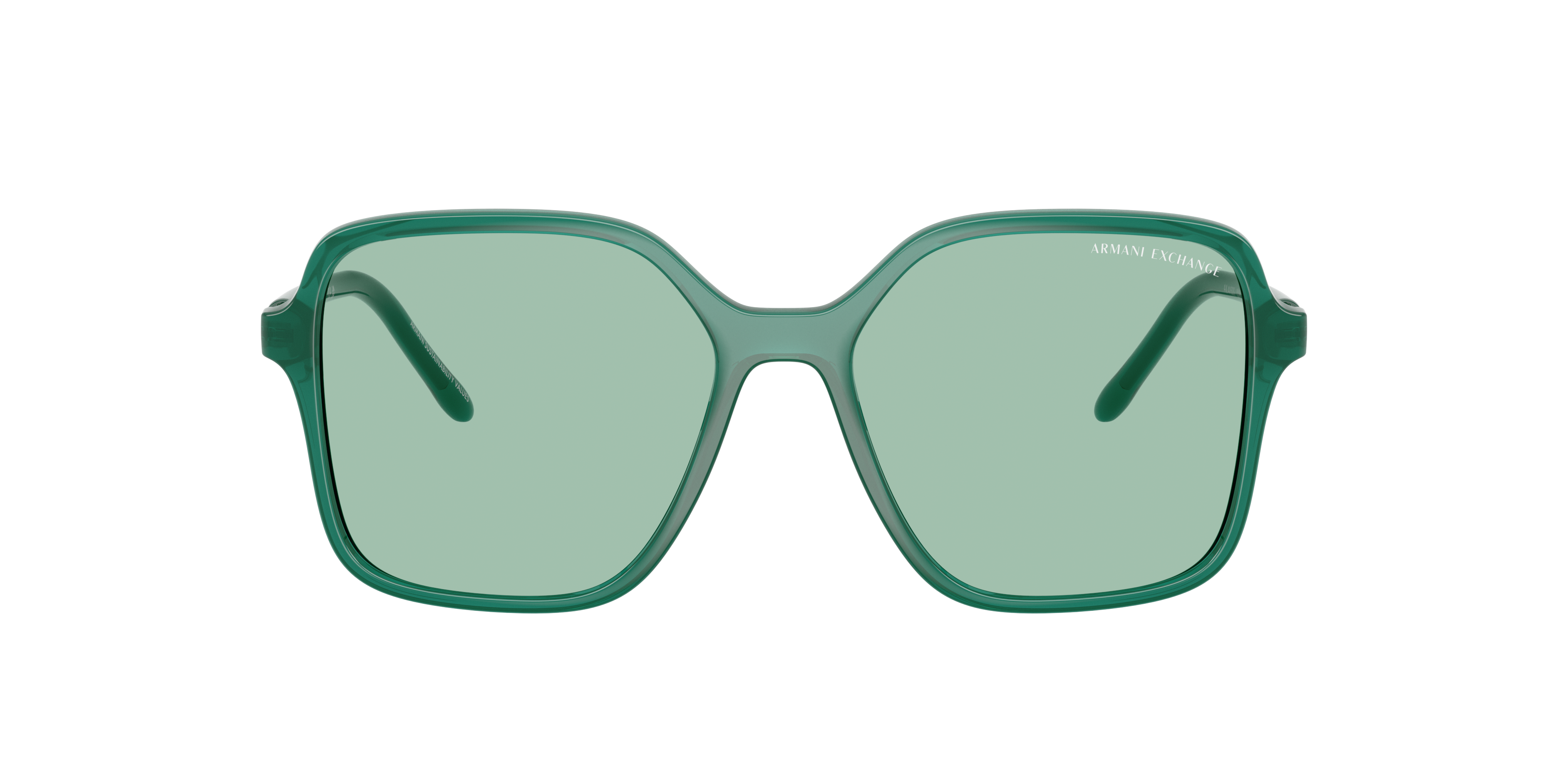 Elevate your style with Armani Exchange AX4163S. The butterfly shape and polished opal teal frame color are a modern twist on a timeless design. These shades feature solid green lenses that provide optimal protection against the sun's rays. Embrace the luxury of Armani Exchange and discover fashion-forward optics at its finest.