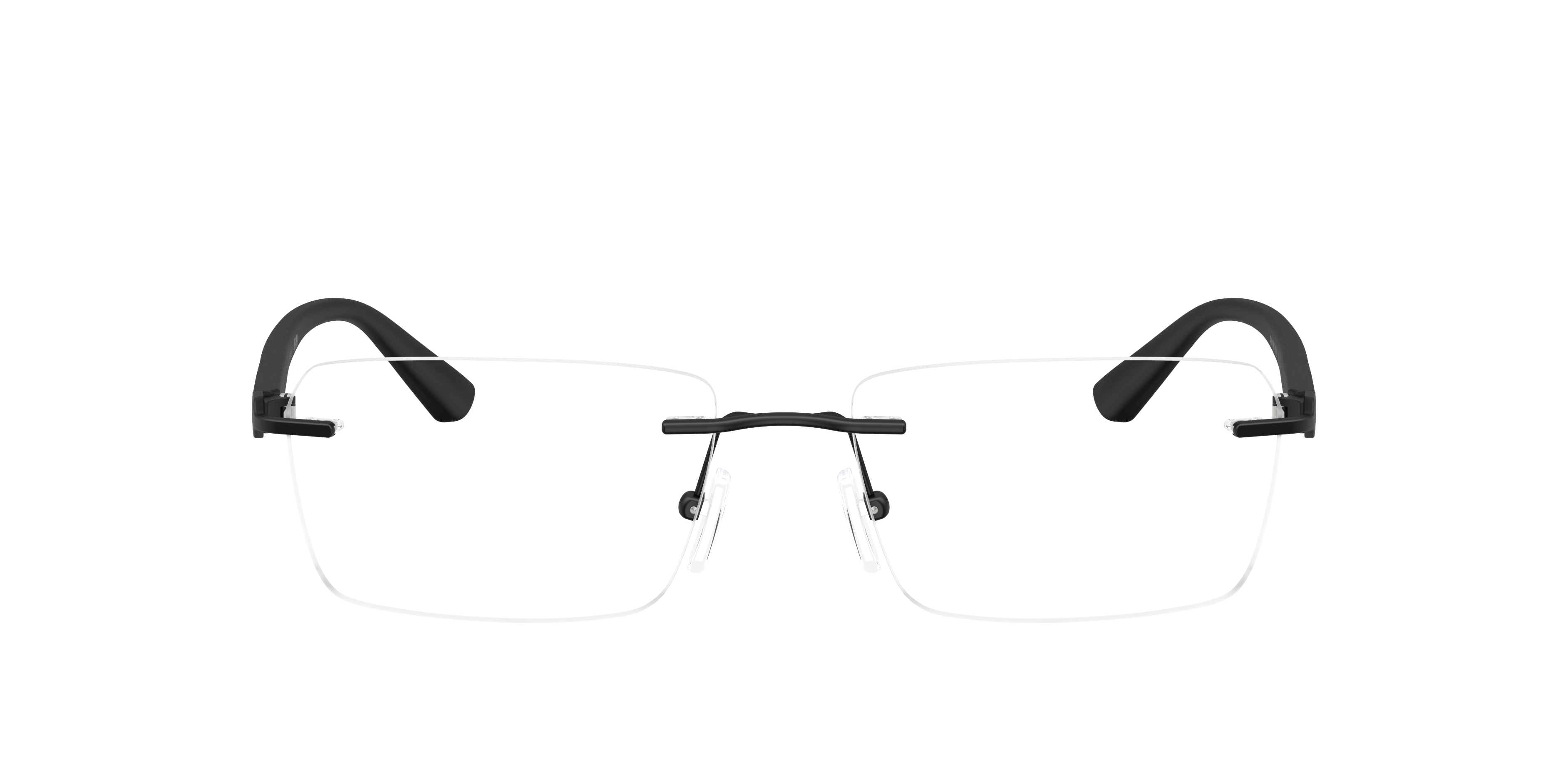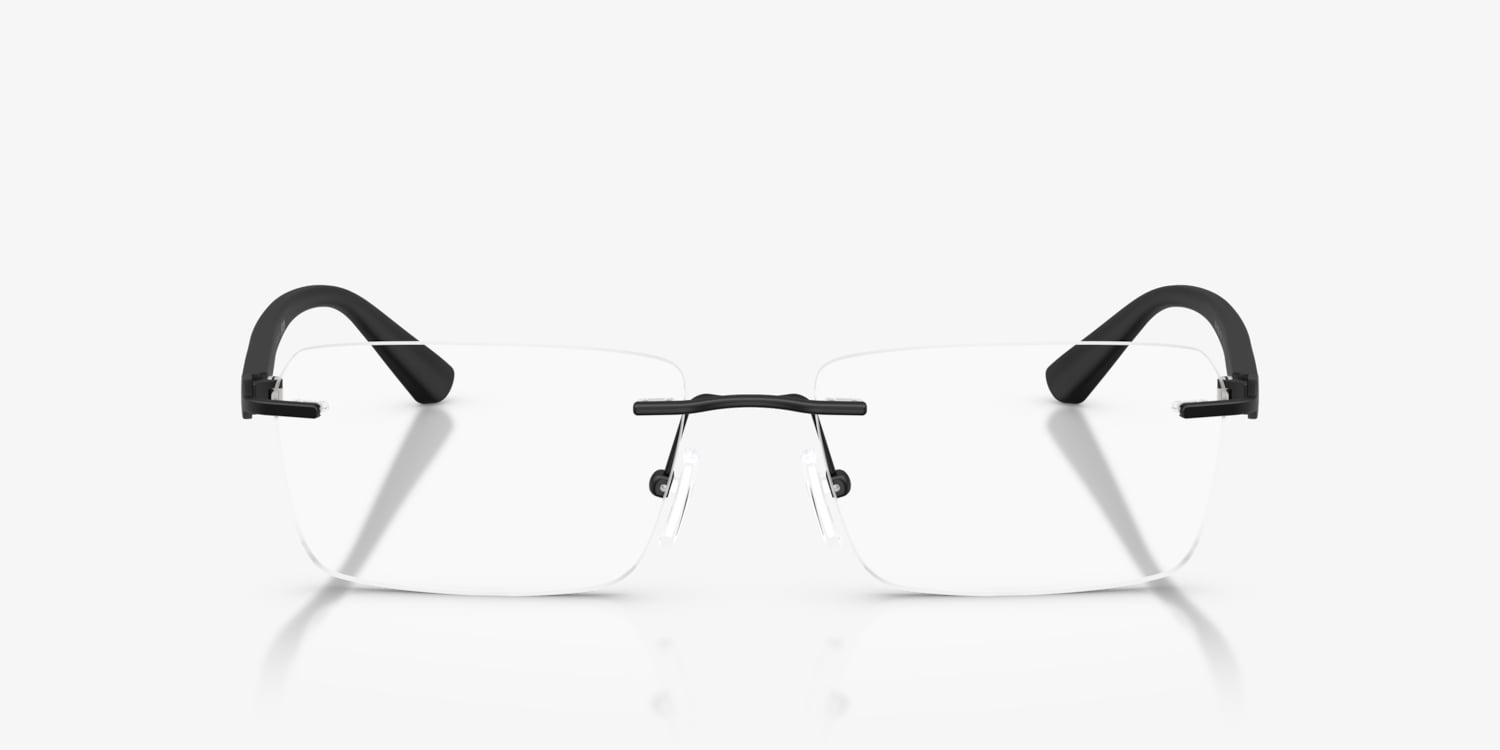 Lightweight and modern, the Armani Exchange AX1064 optical glasses feature rimless rectangle frames for a sleek, minimalist style. Crafted from metal with injected temples, they offer durability and comfort. The adjustable nosepads frames ensure a secure fit, while the black frame front adds a polished touch to this contemporary design. Perfect as black glasses for men, these Armani Exchange eyeglasses combine functionality with timeless elegance.