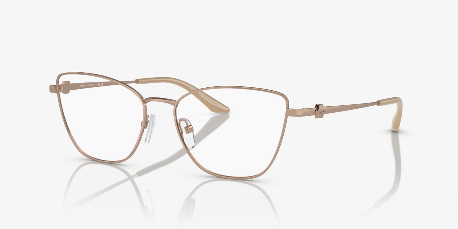 Elevate your fashion game with Armani Exchange AX1063 optical glasses. The polished, shiny rose gold metal frame in a cat eye shape adds a touch of sophistication to any look. These glasses feature a sleek design that is both stylish and functional. Choose these frames for an effortlessly chic style statement. Available with prescription lenses.