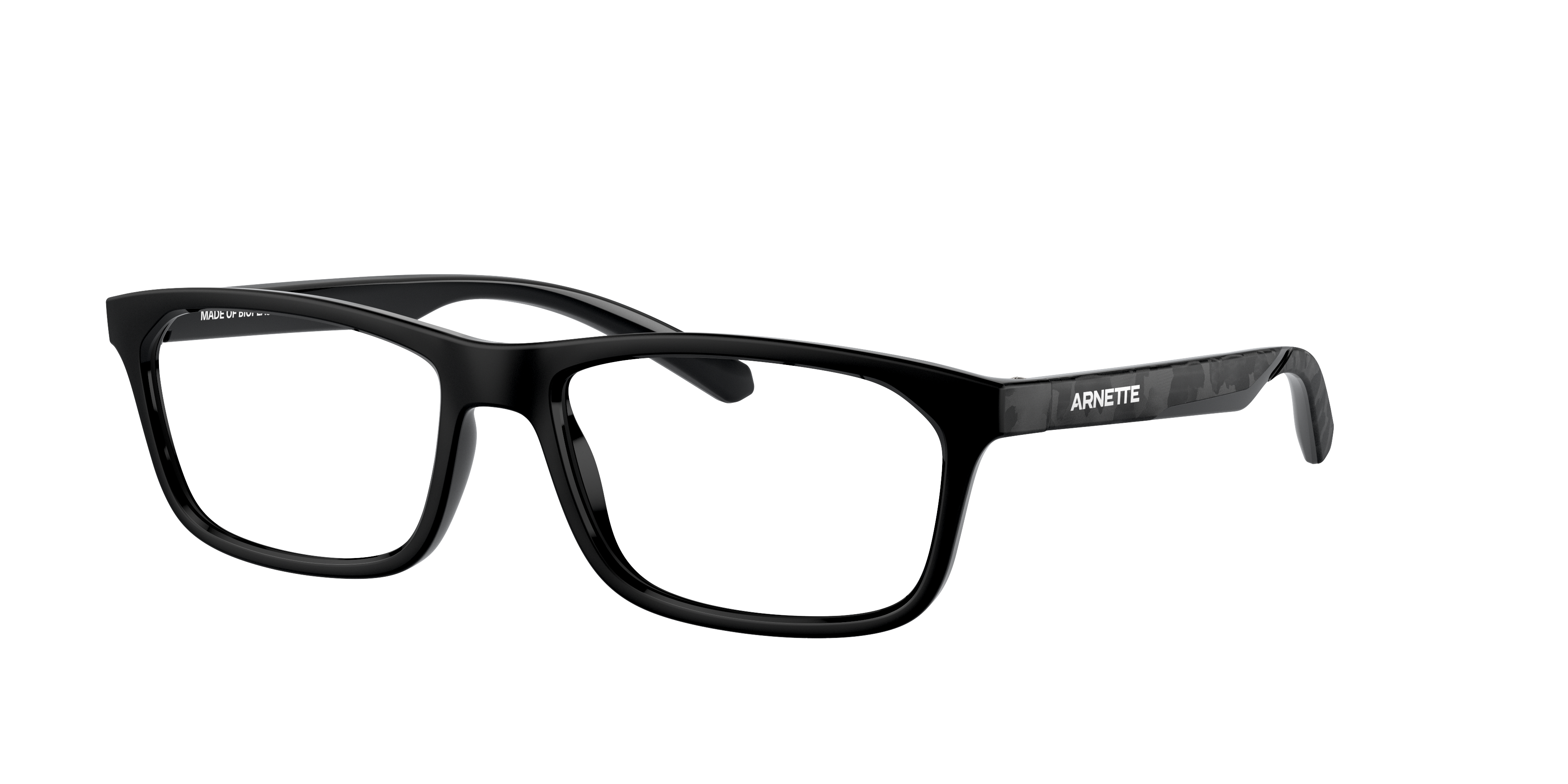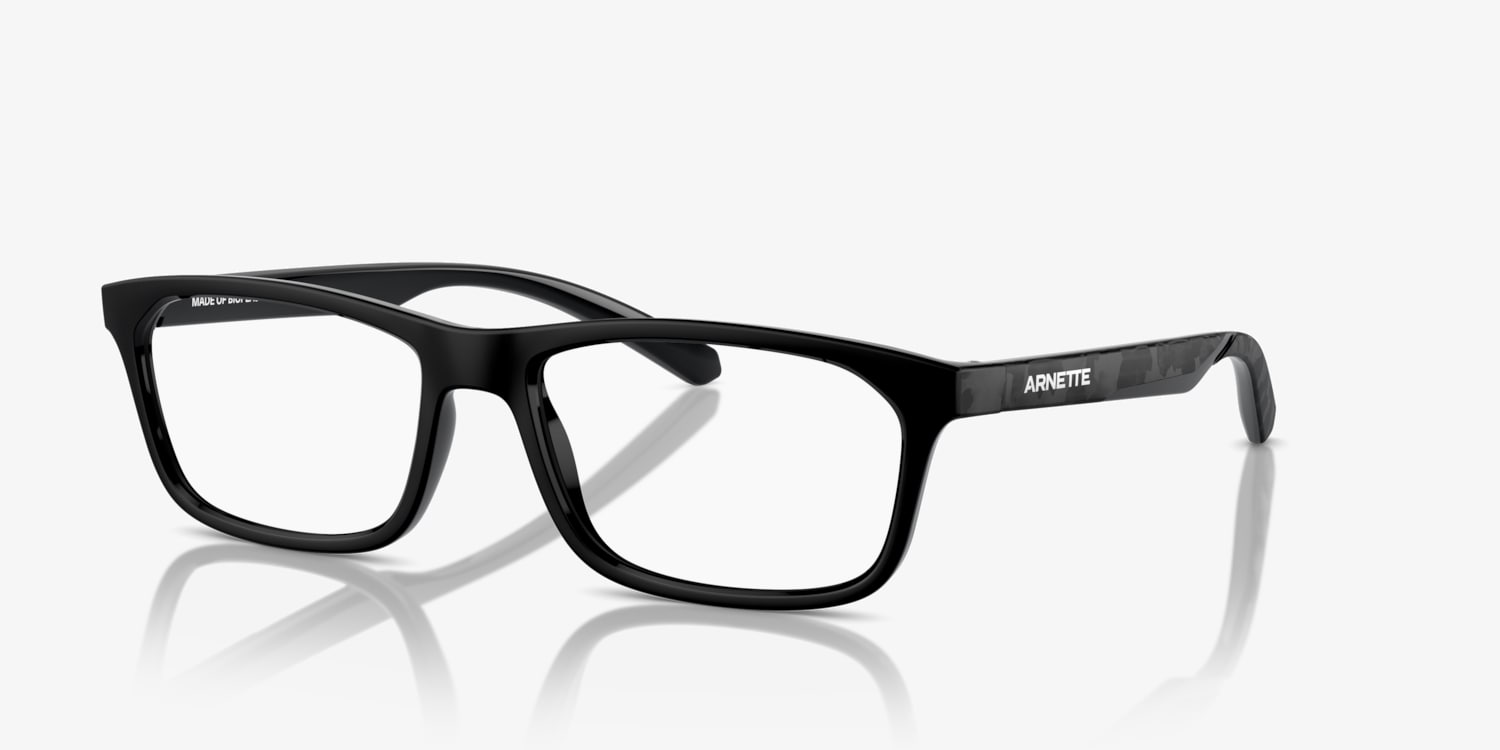 Embrace the synergy of style and performance with Arnette Kamaya optical glasses. The pillow shape and matte finish on the recycled black frame give these shades a unique and modern look. The transparent lens, in a demonstration setting, adds to the versatility of these frames. Crafted from high-quality materials, these glasses are designed for durability and comfort. With their sleek design and superior functionality, they are an ideal choice for everyday wear or fashion-forward statement pieces. Available with prescription lenses.