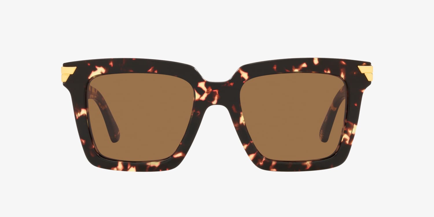 Experience the perfect balance between style and performance with Bottega Veneta BV1005S. These rectangle-shaped glasses features a polished tortoise acetate frame that adds a touch of sophistication to any look. The solid color brown lenses provide excellent clarity and sun protection, making these shades a versatile choice for everyday wear. Available with prescription lenses.
