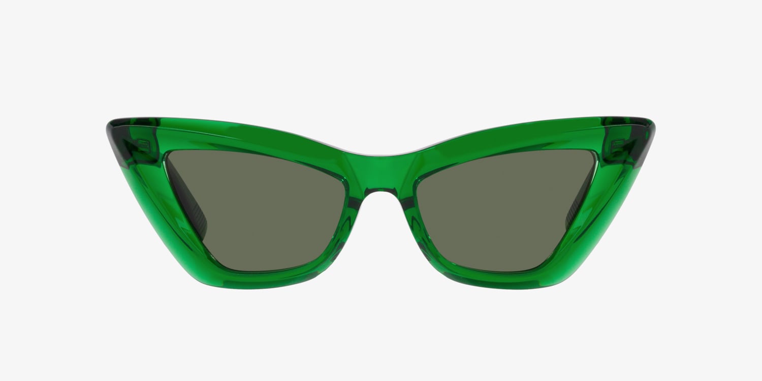 Elevate your style while optimizing comfort with Bottega Veneta BV1101S. These cay-eye glasses features a polished green frame made of durable acetate, adding a pop of color to your look. The solid green lenses provide excellent protection and ensure that you see clearly in any light condition. Embrace the fashion-forward trend and stay comfortable with these exquisite shades. Available with prescription lenses.
