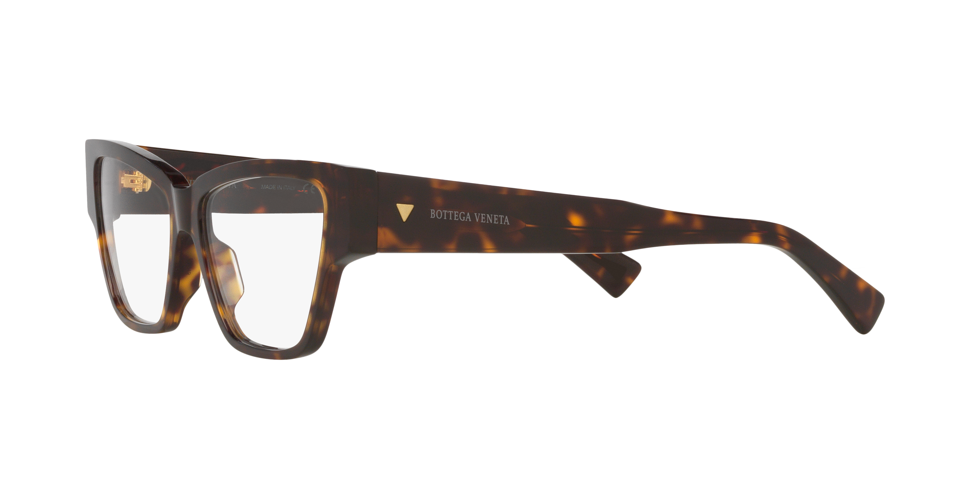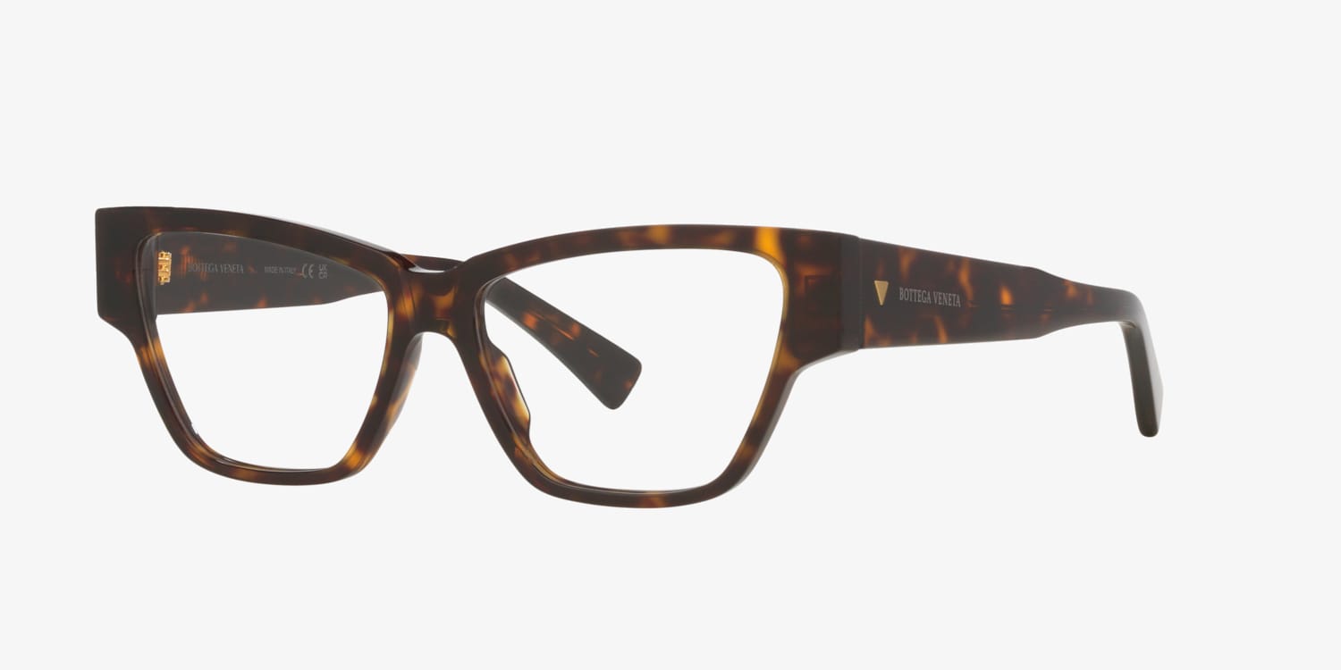 Bottega Veneta BV1288O eyeglasses are a perfect blend of style and comfort. The cay-eye shape, crafted from polished acetate, adds a touch of vintage glamour to your look. The tortoise frame color gives these glasses a timeless appeal. Embrace the elegance and sophistication of Bottega Veneta with this stunning pair of optical frames. Available with prescription lenses.