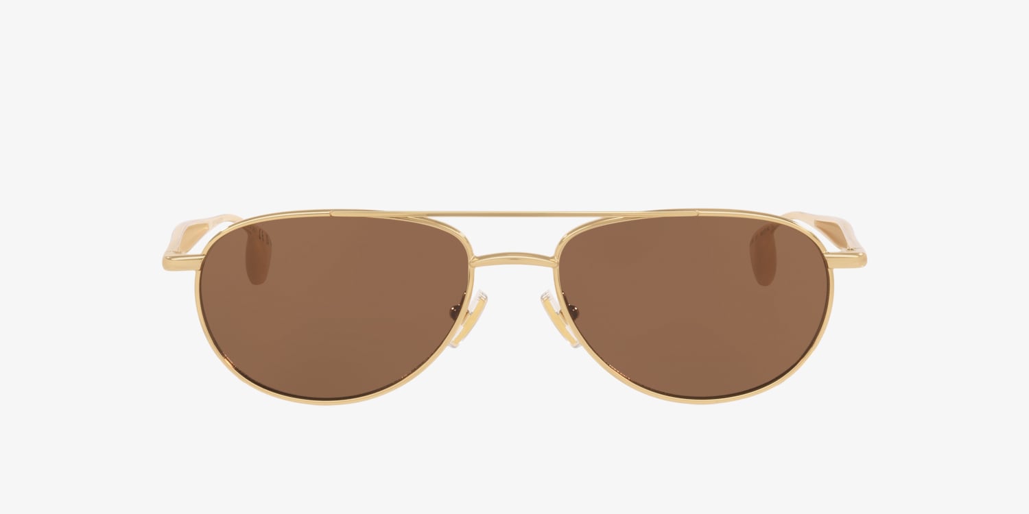 Make a bold statement with the Bottega Veneta BV1419S sunglasses. Featuring lightweight gold metal irregular frames, the unique asymmetry adds a contemporary edge to any look. Yellow solid-color lenses provide advanced protection from UVA/UVB rays.