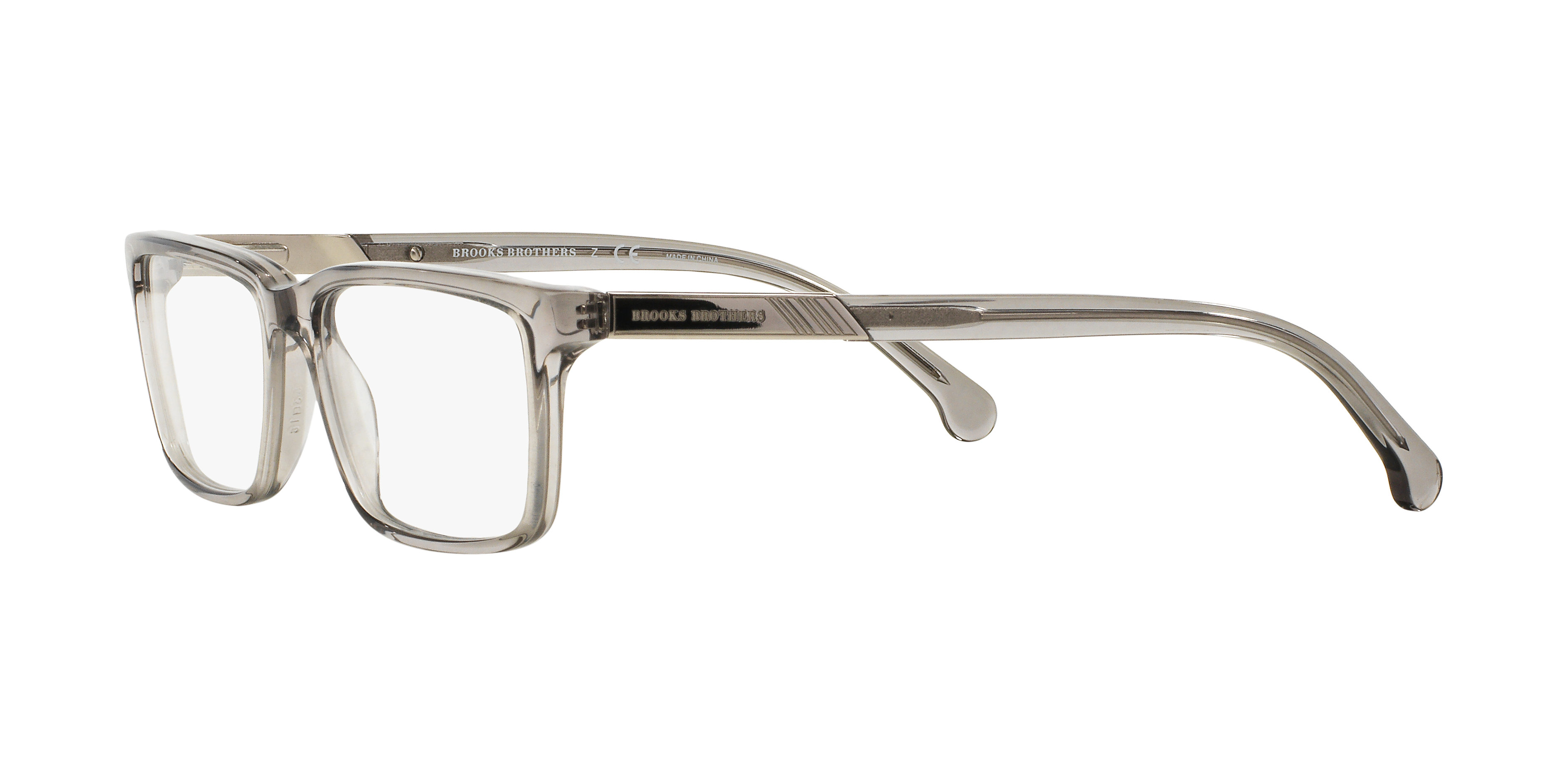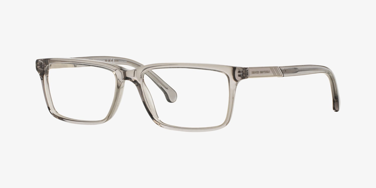 Unveil a new dimension of sophistication with Brooks Brothers BB2019 eyeglasses. Crafted from high-quality acetate, these glasses have a polished finish and a unique transparent grey color that adds a touch of elegance to any look. The rectangle shape offers a timeless appeal, making these frames an ideal choice for those seeking both style and comfort. Embrace the power of fashion in style with Brooks Brothers BB2019.