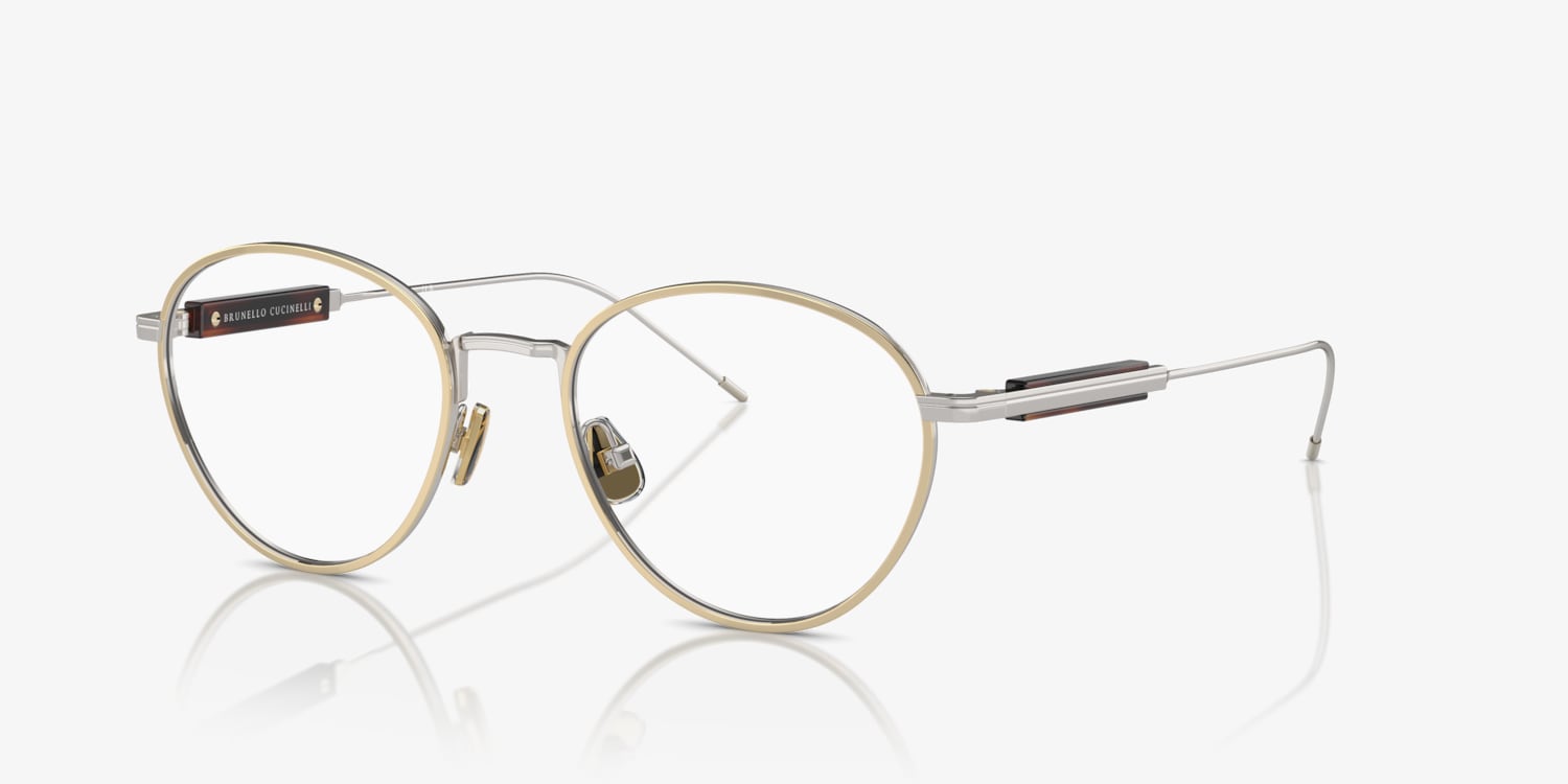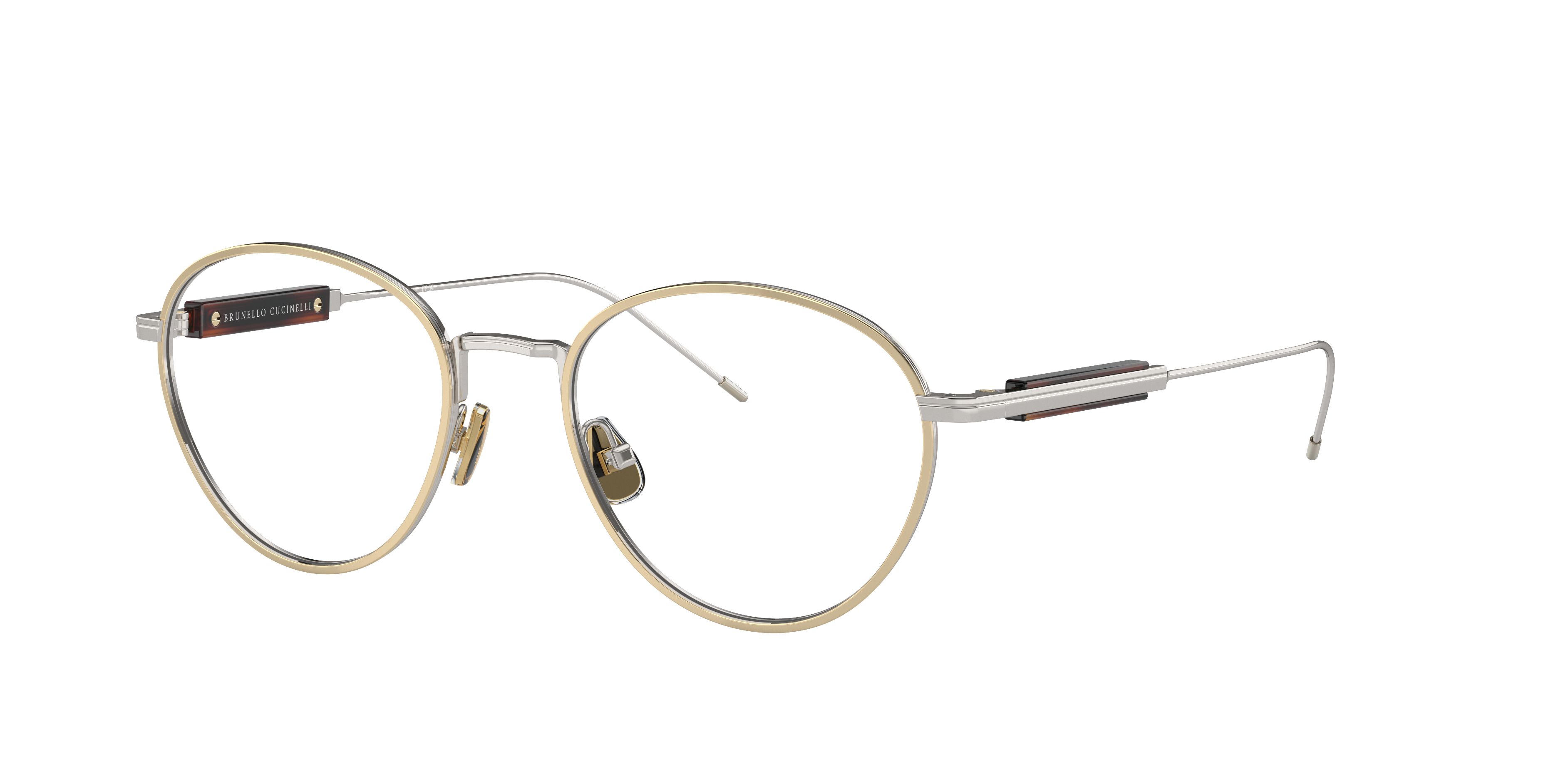 Discover the impeccable craftsmanship that unites style and optical functionality in Brunello Cucinelli BC1003T optical glasses. The polished titanium frame, featuring a unique silver/gold color scheme, exudes elegance and sophistication. The phantos shape adds a modern twist to the traditional design. These glasses are not only stylish but also versatile, making them an ideal choice for everyday wear. Embrace the timeless appeal of Brunello Cucinelli with these stunning shades. Available with prescription lenses.