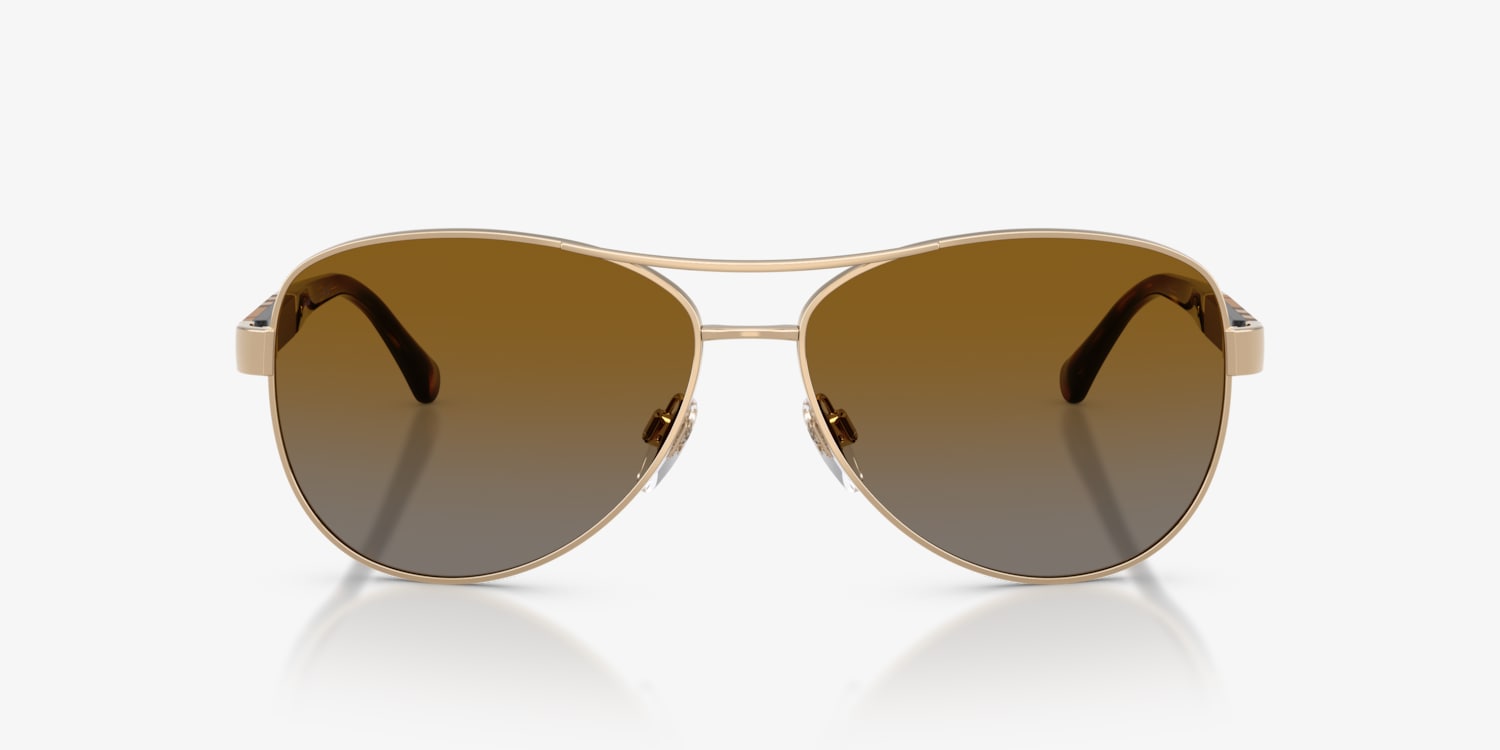 Elevate your fashion quotient with Burberry BE3080 sunglasses. Featuring a pilot shape crafted from polished steel, these glasses are designed to make a lasting impression. The polarized lenses in Polar Brown Gradient not only reduce glare but also provide excellent clarity of vision. The light gold frame color adds a touch of elegance to any outfit, making these shades a versatile choice for everyday wear. Available with prescription lenses.