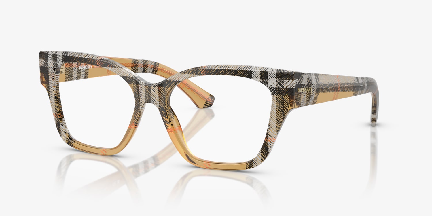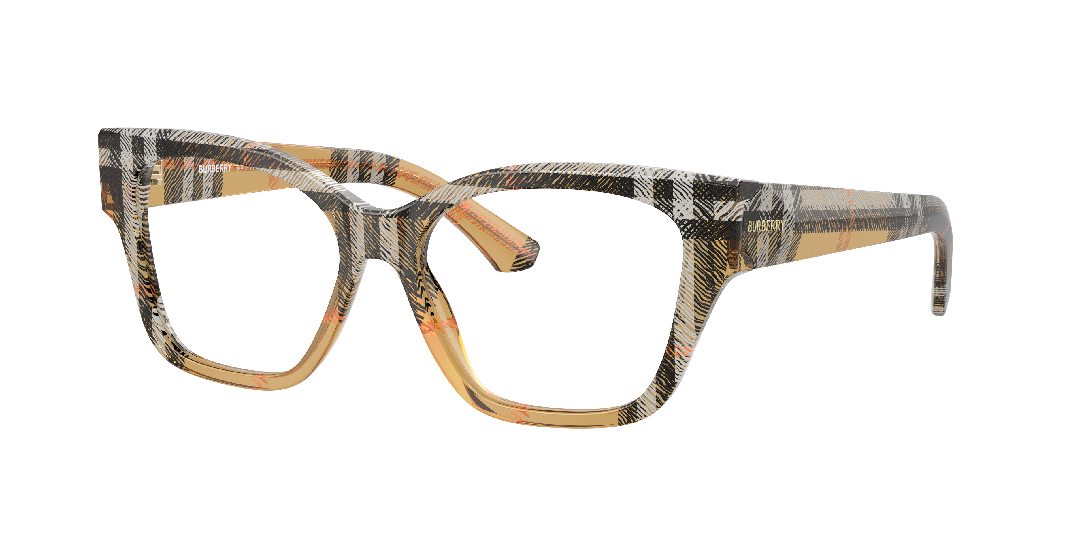 Discover the impeccable balance between style and optical functionality in Burberry BE2420. The cay-eye shape, crafted from durable acetate, adds a touch of sophistication to your look. The polished check sand frame color finish, paired with the black accents, creates a striking contrast. These frames are not only stylish but also versatile. Embrace the timeless elegance of Burberry with these exquisite glasses. Available with prescription lenses.