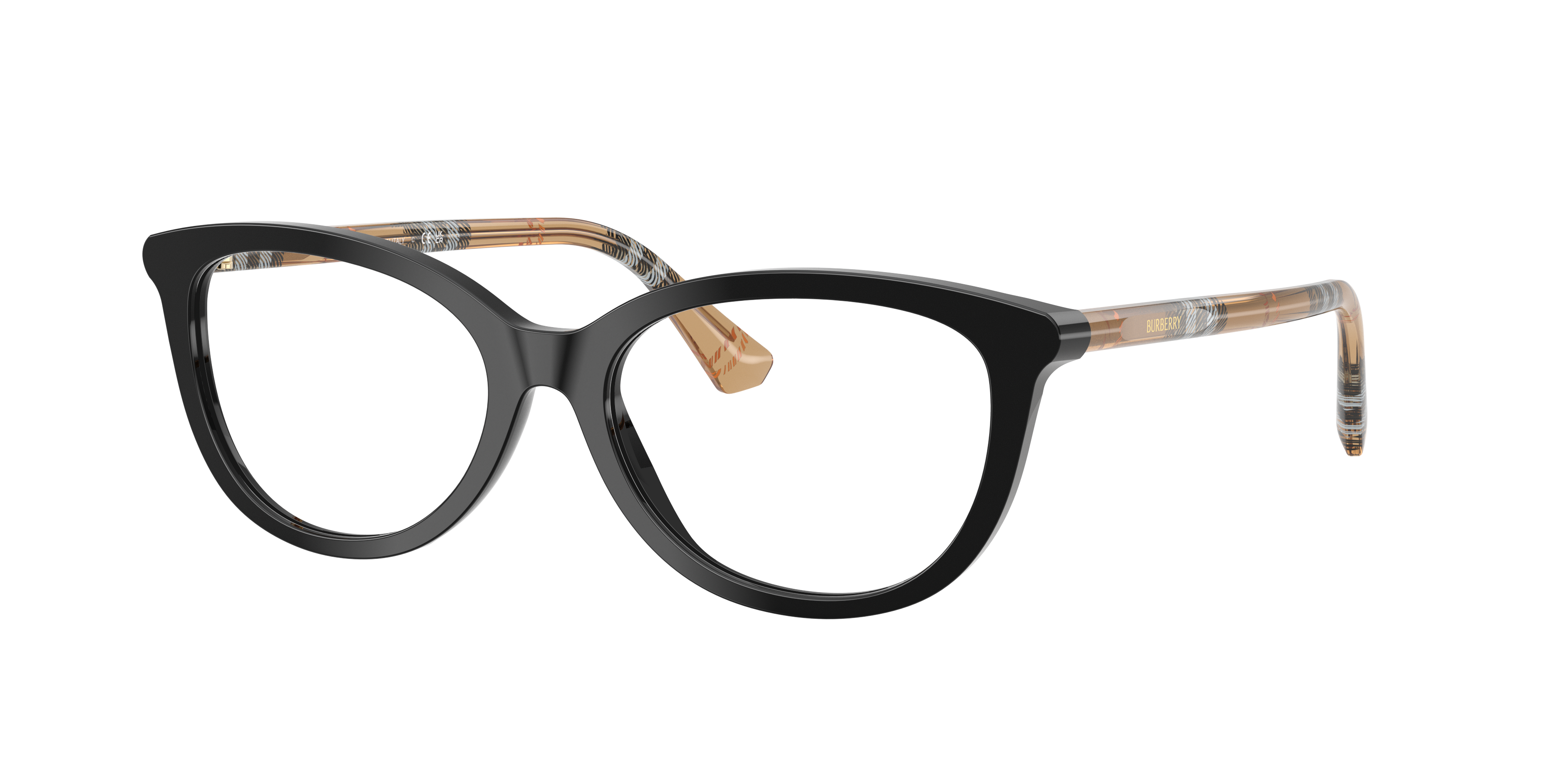 Burberry BE2431 eyeglasses seamlessly combine a unique, irregular shape with high-quality craftsmanship to create a truly distinctive design. The black acetate frame has a polished finish, adding a touch of elegance to the overall look. These glasses features a unique and eye-catching design that is sure to turn heads. Embrace your individuality with these stylish frames from Burberry. Available with prescription lenses.
