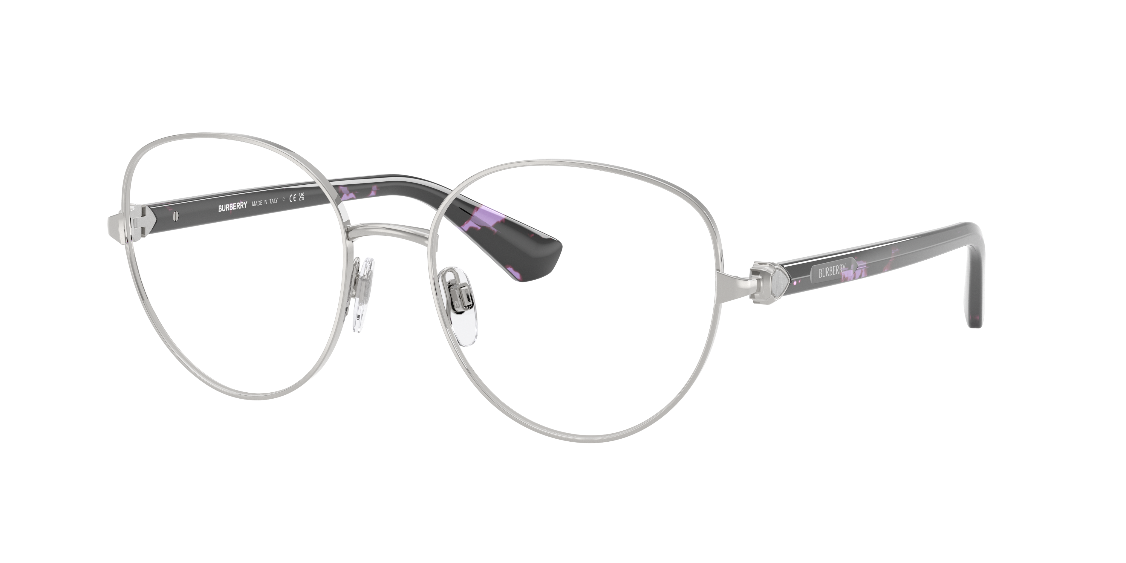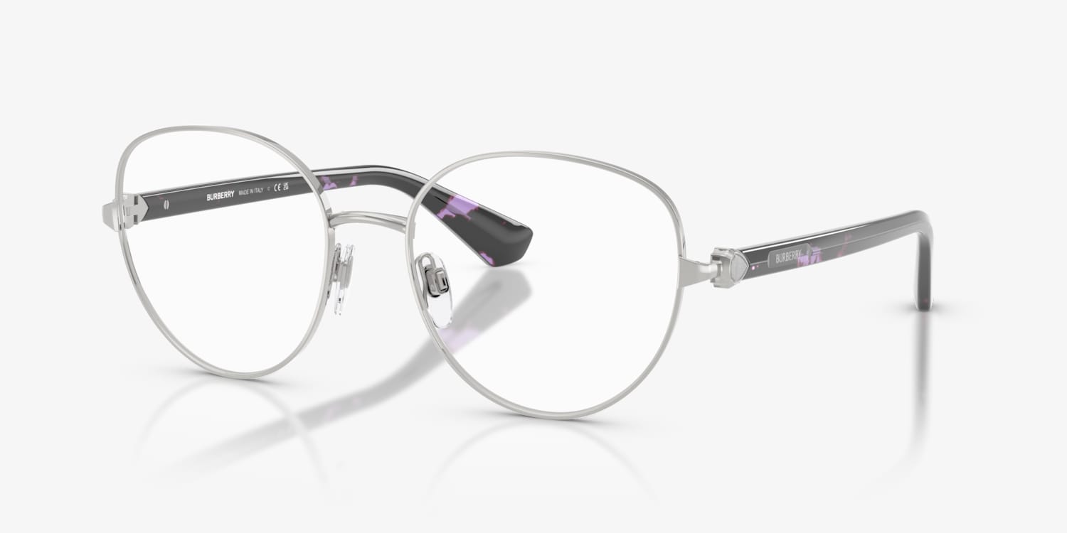 Elevate your fashion credentials with Burberry BE1394 optics, designed for the discerning modern individual. The polished silver metal frame in a phantos shape exudes elegance and sophistication. These glasses features a unique design detail, showcasing Burberry's iconic check pattern on the temple tips. The black frame color adds a touch of timeless appeal to this contemporary style. Available with prescription lenses.