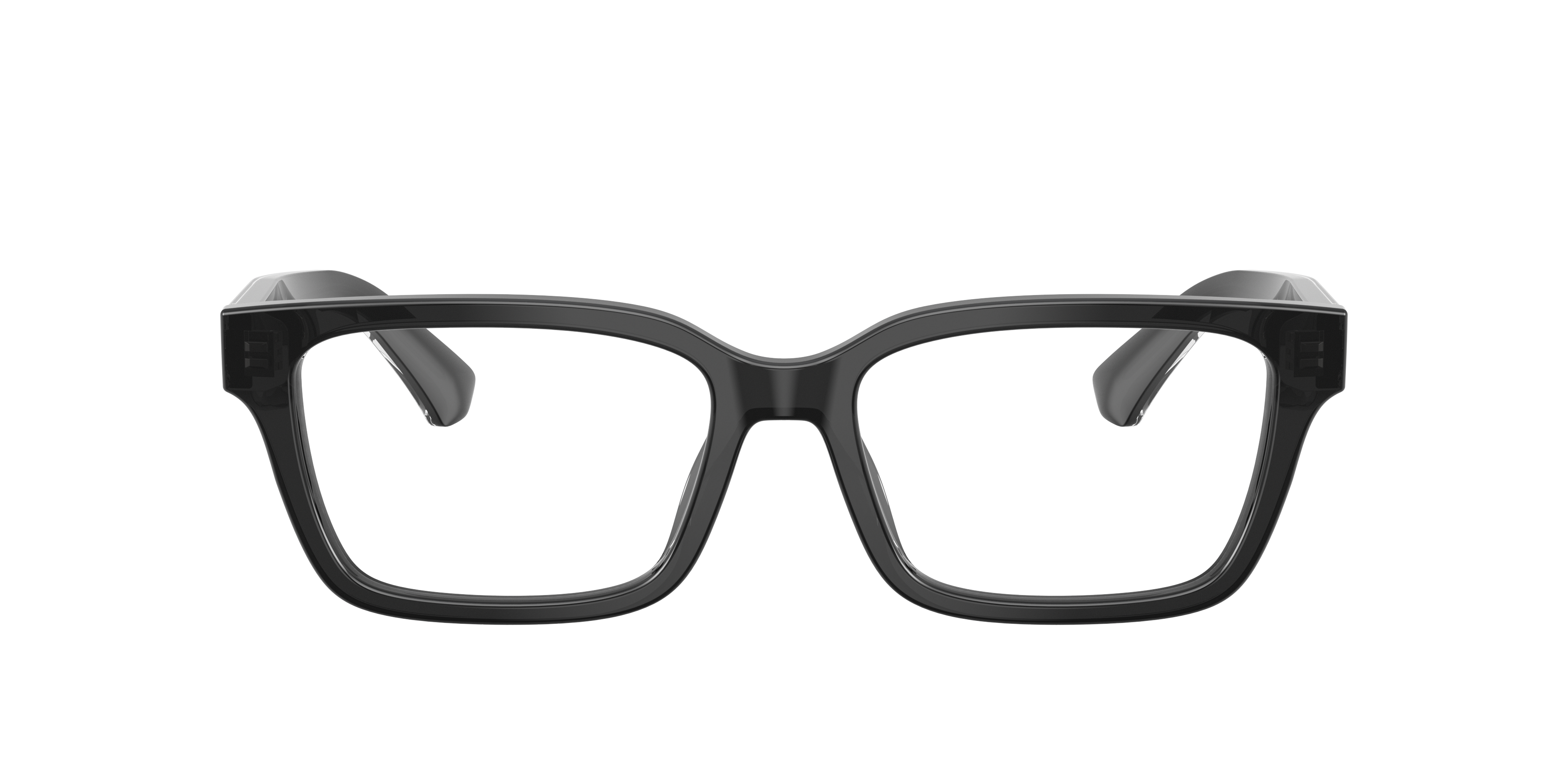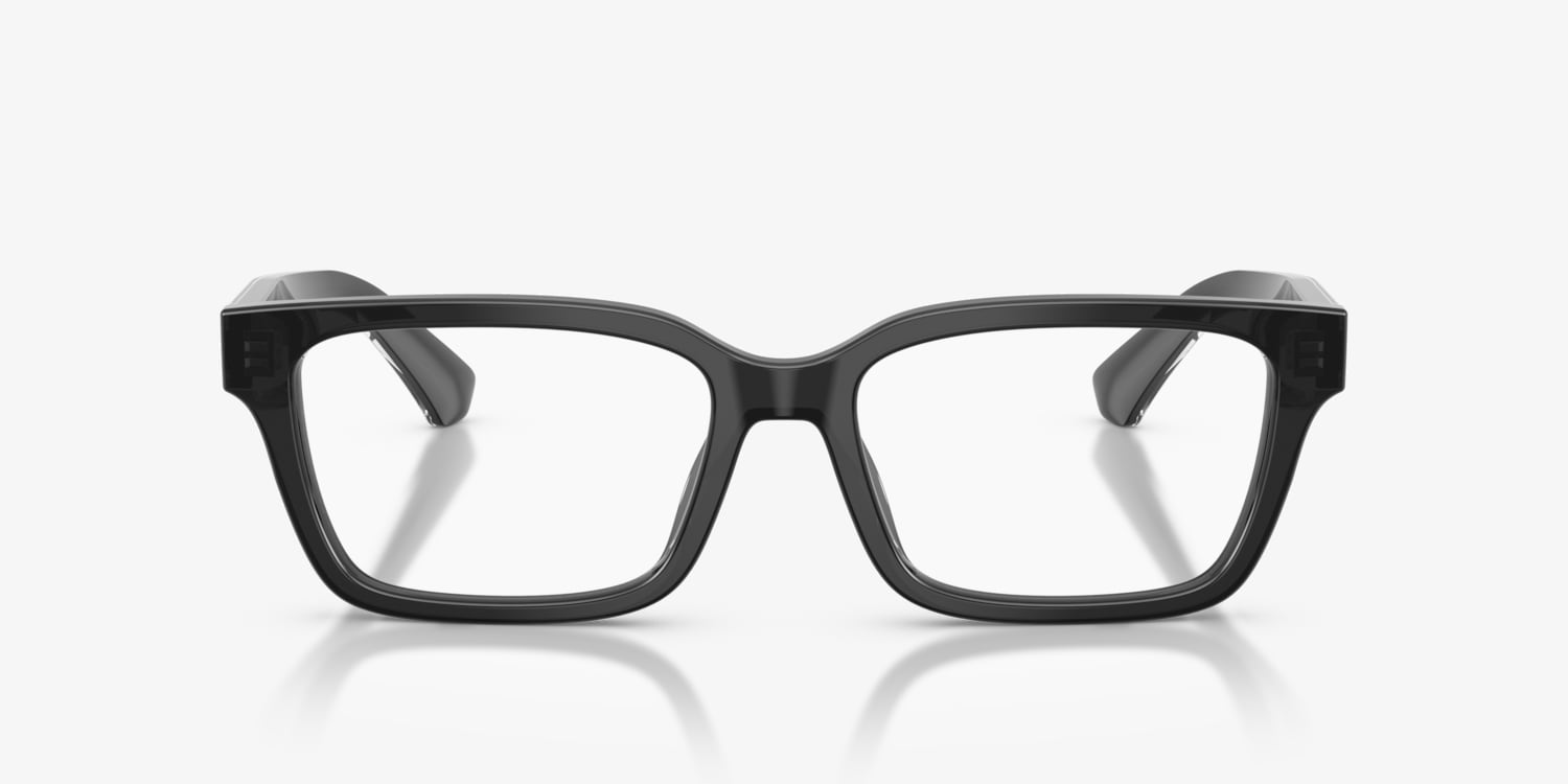 Elevate your everyday look with Burberry BE2453 optical frames. Crafted from bio-based acetate containing at least 50% renewable plant-based materials, these Burberry eyeglasses feature classic rectangle eyeglasses in a shape that exudes clean sophistication. The layered temple design showcases transparent acetate with a polished metal core, engraved with iconic Burberry logos and hallmarks. Finished with a sleek silver/gunmetal/grey front color and clear lenses, these glasses offer timeless style paired with innovative detailing.