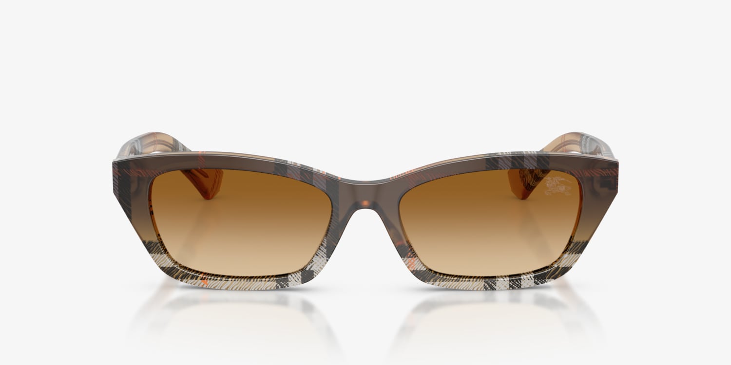 Elevate your eyewear collection with the Burberry BE4488 sunglasses. Crafted with full-rim rectangular frames in bio-based acetate, they feature a modern narrow shape and a subtly arched brow line. The brown gradient lenses and matching brown frame add timeless sophistication, while delivering advanced UVA/UVB protection.