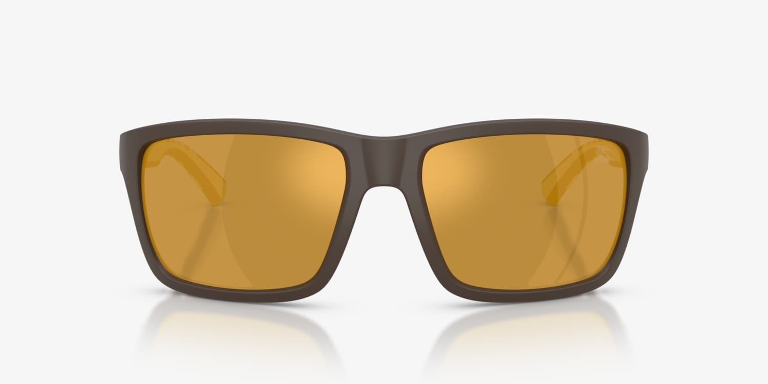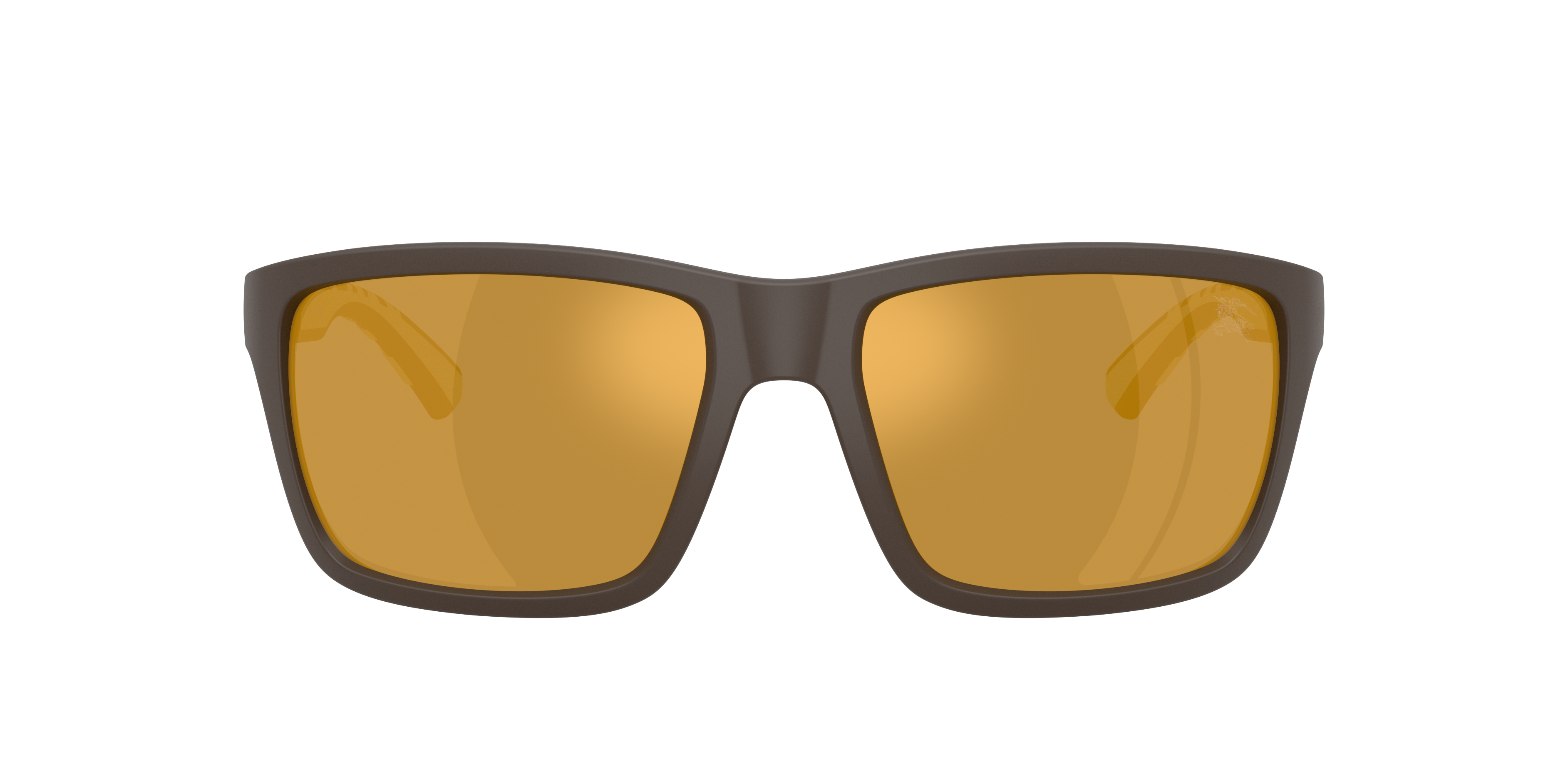 Bold and refined, the Burberry BE4483 sunglasses blend heritage and modern design. The rectangular frames in brown/tan plastic create a sleek and structured look, while injected temples feature a rubber check detail for added style. Mirrored sunglasses with brown lenses reduce glare and provide a metallic finish. Honoring Burberry's legacy, the Equestrian Knight Design is printed on the lens. Crafted with bio-based nylon, these Burberry sunglasses showcase commitment to sustainability without compromising sophistication.