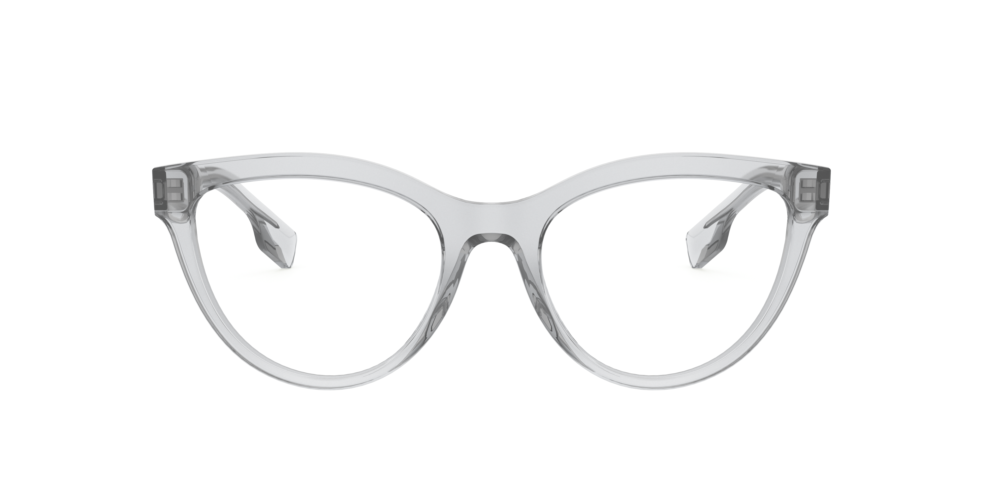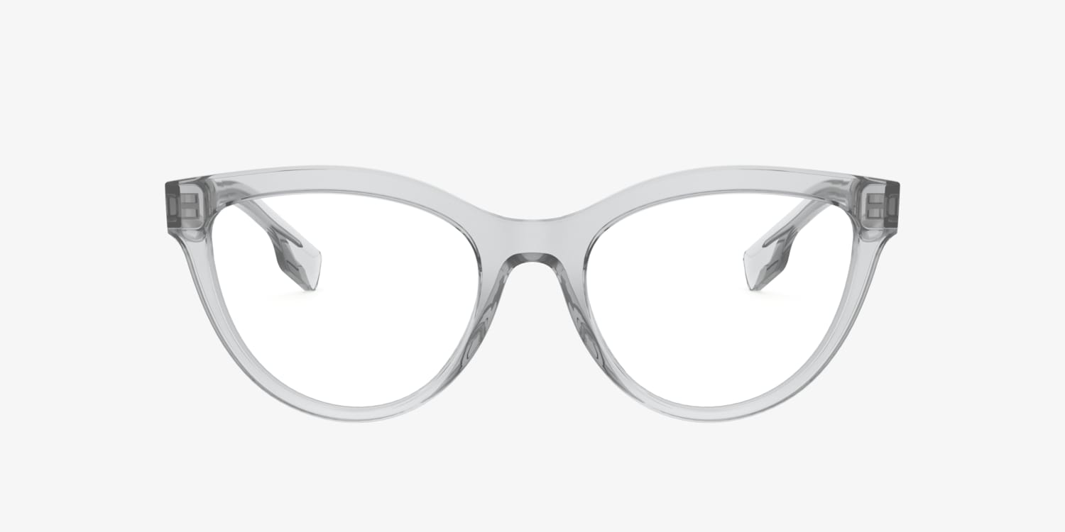 Elevate your style game with Burberry Lillie eyeglasses. The cat eye shape adds a touch of vintage glamour to any look, while the polished transparent grey acetate frame offers a modern twist. These frames are not only stylish but also versatile, making them a perfect choice for everyday wear. Embrace timeless elegance with Burberry Lillie. Available with prescription lenses.