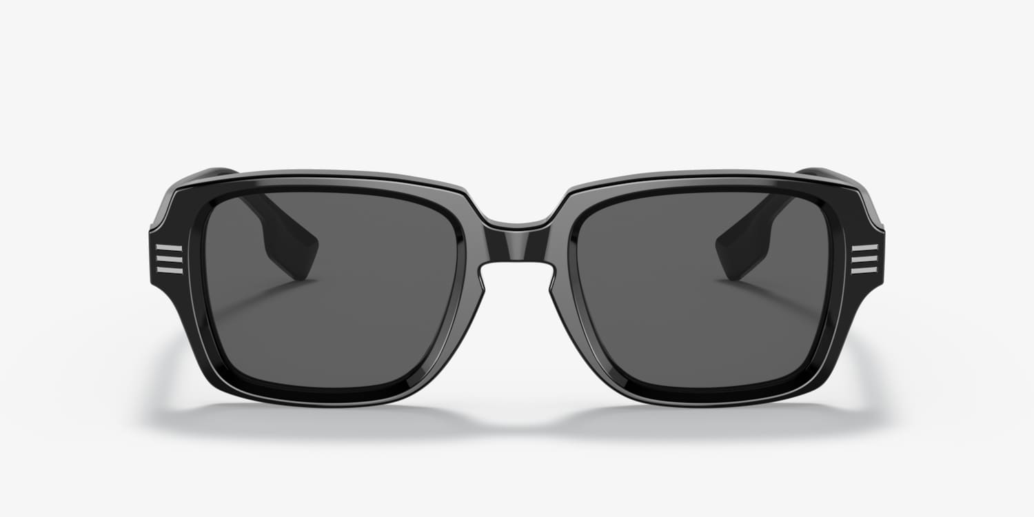 Elevate your style with Burberry Eldon sunglasses. The rectangle shape and polished black acetate frame offer a timeless, sophisticated look. The solid color dark grey lenses provide optimal protection while enhancing your vision. These shades feature a key bridge, adding a unique touch to the design. Experience the perfect combination of fashion and functionality with Burberry Eldon sunglasses. Available with prescription lenses.