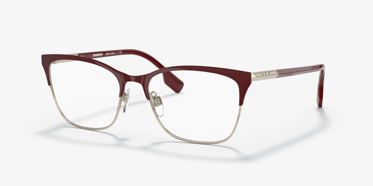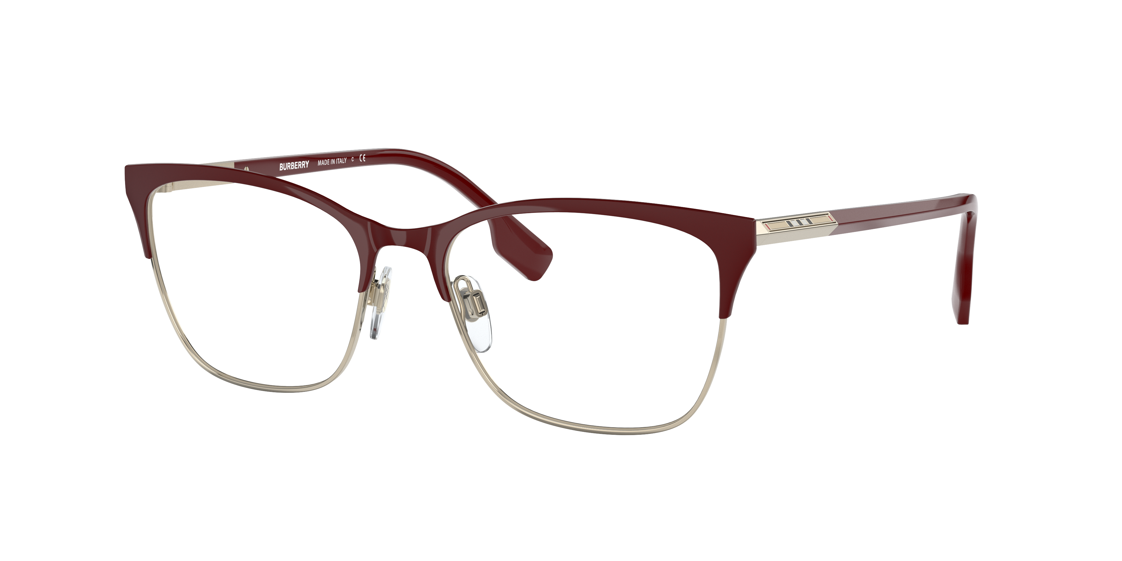 Elevate your style with Burberry Alma eyeglasses. Crafted from durable steel, these glasses features a cay-eye shape that adds a touch of sophistication to any look. The polished light gold/bordeaux color gives these frames a glamorous and elegant feel. With their unique design and high-quality material, Burberry Alma eyeglasses are the perfect choice for those seeking both fashion and functionality. Available with prescription lenses.