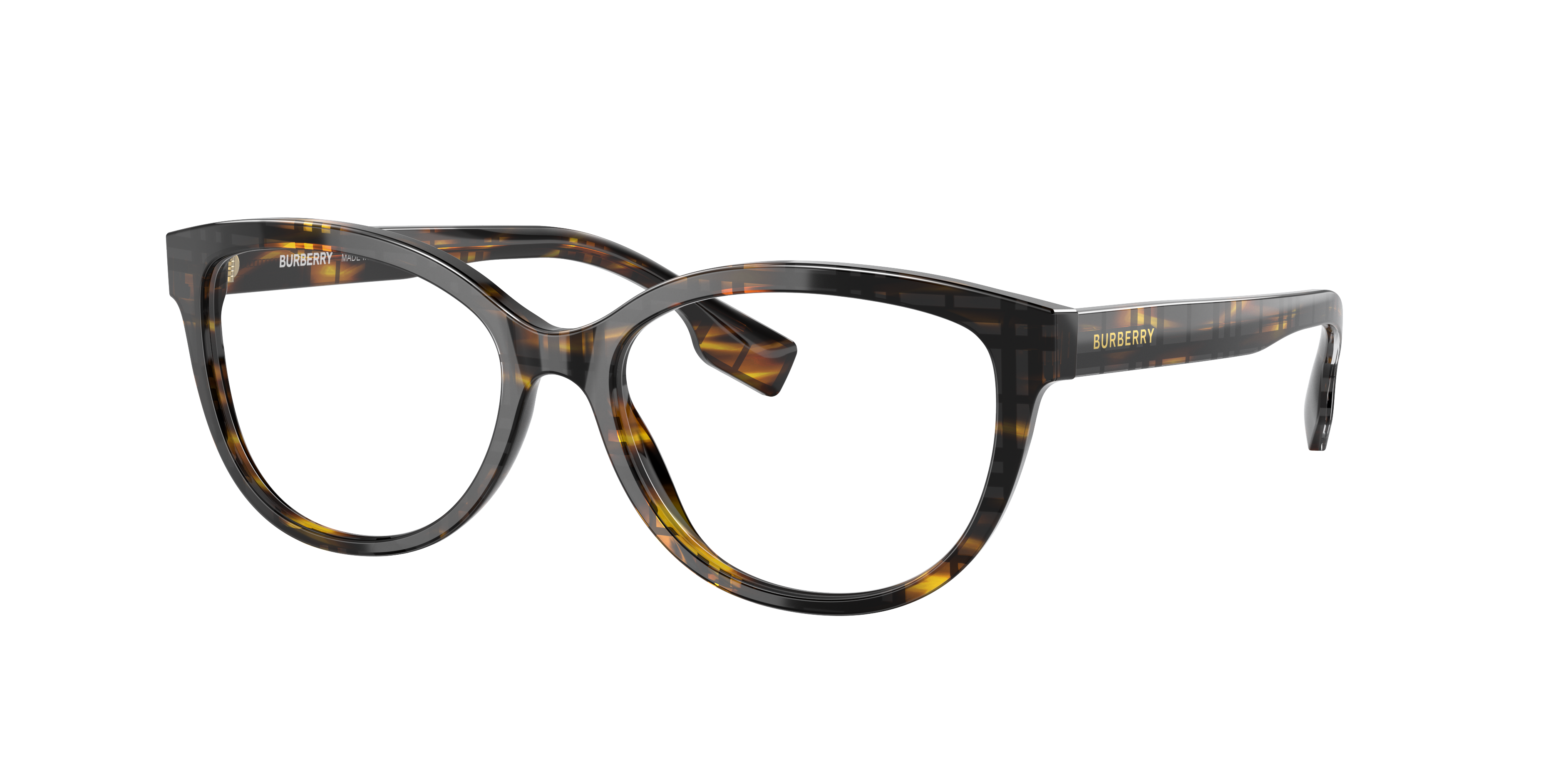 Evocative and sophisticated, Burberry Esme eyeglasses are the perfect choice for those seeking both style and comfort. Crafted from durable acetate, these square-shaped frames feature a polished top check/striped brown color finish that adds a touch of elegance to any look. The black frame color provides a striking contrast, making these glasses an ideal accessory for fashion-forward individuals.