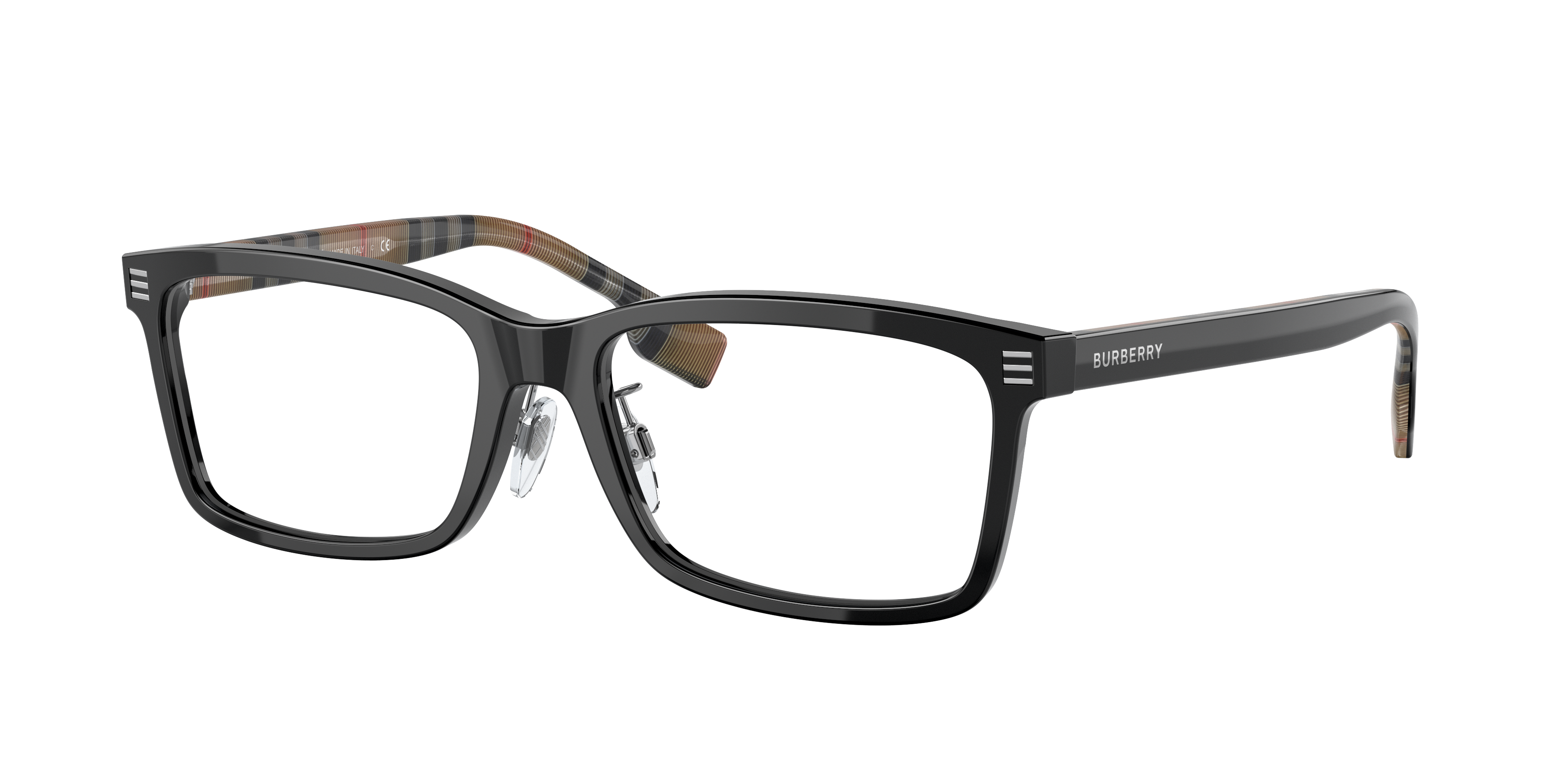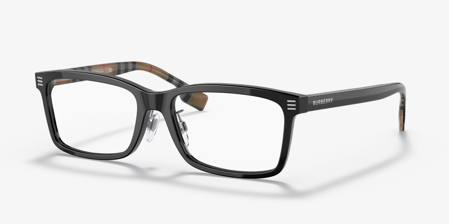 Burberry Foster eyeglasses are a perfect blend of style and functionality. The rectangle shape, combined with a polished black acetate frame, offers a timeless appeal that is sure to elevate your look. These glasses feature a unique design detail on the temples that adds an elegant touch. Whether you're looking for everyday eyewear or fashion-forward shades, these frames are a versatile choice for all your vision requirements. Available with prescription lenses.