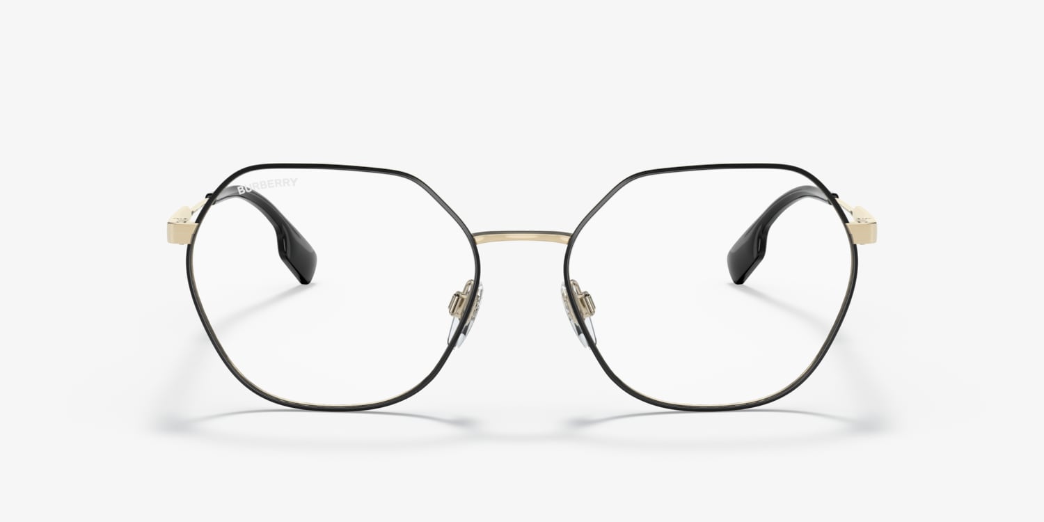 Elevate your fashion while optimizing utility with Burberry Erin eyeglasses. The irregular shape and polished black metal frame offer a unique and modern look. The frame color, combined with the shape, creates a striking contrast that is sure to turn heads. These glasses are not only stylish but also versatile.