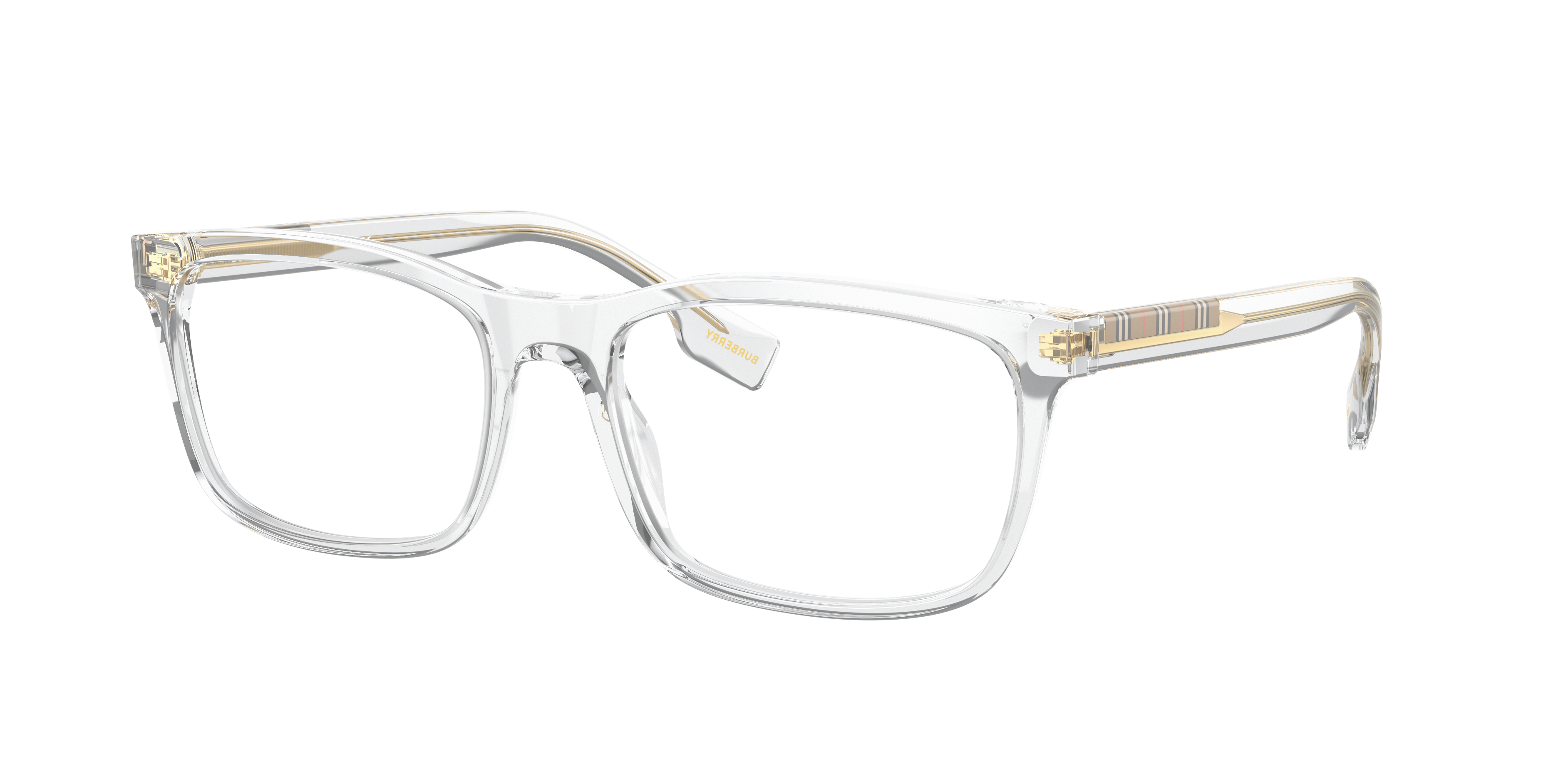 Experience the perfect blend of style and comfort with Burberry Elm eyeglasses. Crafted from durable acetate, these rectangle-shaped frames are designed to last. The polished finish lends a sleek, sophisticated look, while the transparent color adds a touch of modernity. These glasses are not just stylish but also versatile. A true wardrobe essential for any fashion-forward individual. Available with prescription lenses.
