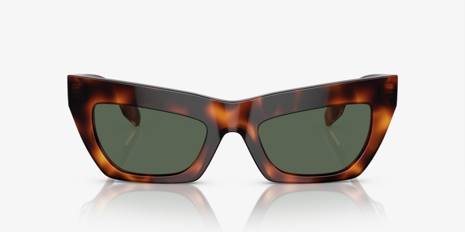 Experience the perfect blend of style and functionality with Burberry BE4405 sunglasses. These cat eye glasses feature a polished, light havana frame made of durable acetate. The solid color dark green lenses provide excellent protection against glare and harmful UV rays. Embrace the timeless elegance of Burberry while staying on trend with these stunning shades. Available with prescription lenses.