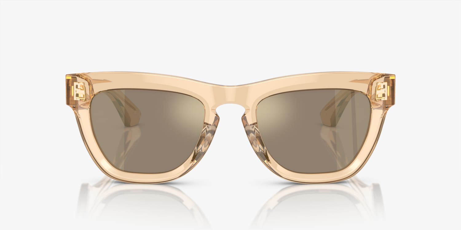 Elevate your fashion while optimizing utility with Burberry BE4415U sunglasses. The square shape and key bridge design give these glasses a timeless appeal. Crafted from high-quality acetate, the polished brown frame offers a sophisticated look. The solid color - light brown mirror gold treatment on the lenses adds a touch of glamour to your style. Featuring a golden mirror finish, these shades are not just stylish but also functional. Embrace the harmonious blend of fashion and functionality with Burberry BE4415U sunglasses. Available with prescription lenses.