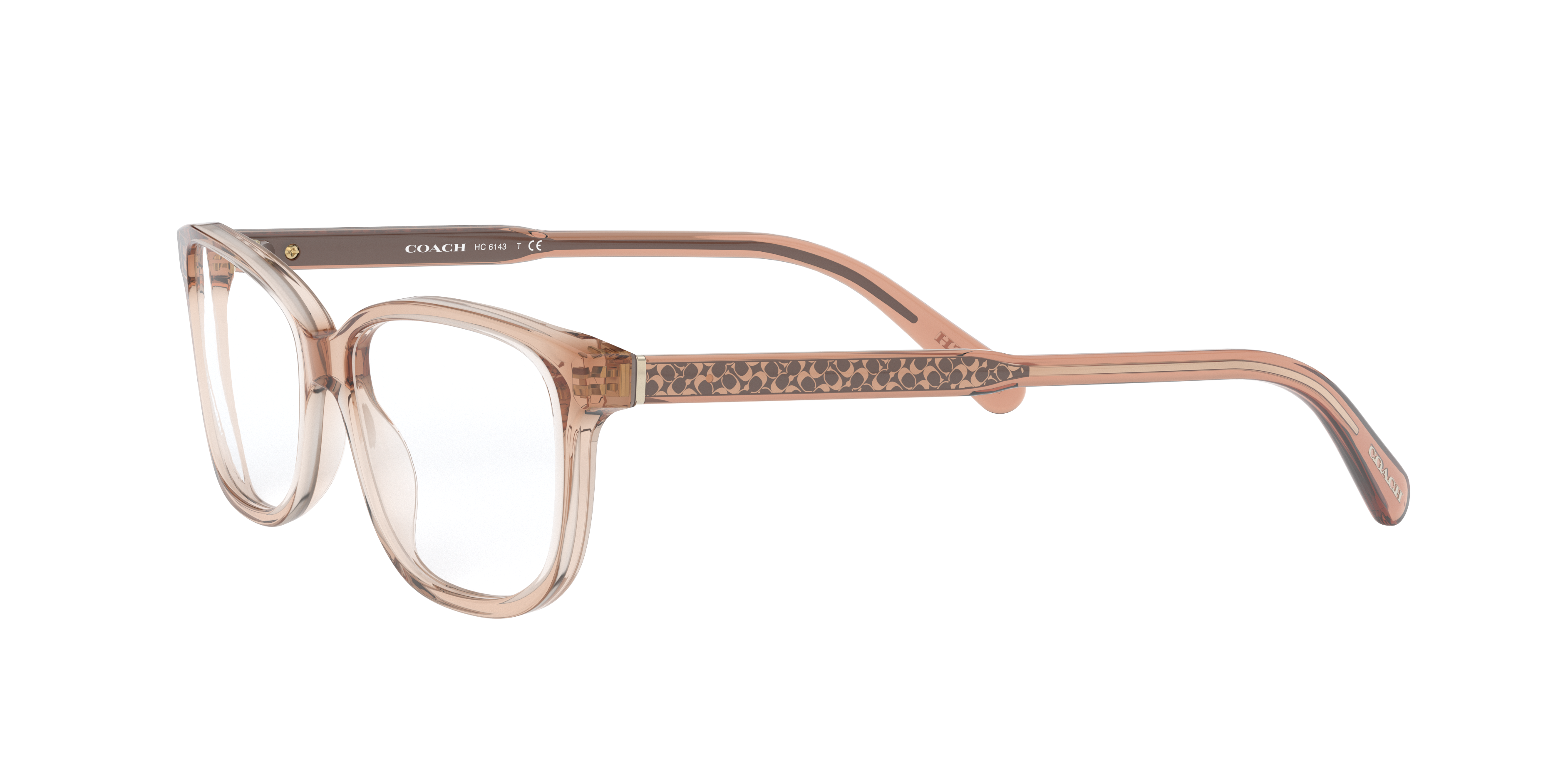 Elevate your fashion and vision standards simultaneously with Coach HC6143 eyeglasses. The pillow shape and polished finish give these frames a unique and sophisticated look. Crafted from durable acetate, the transparent peach color adds a pop of color to any outfit. These glasses are not only stylish but also practical. Available with prescription lenses.
