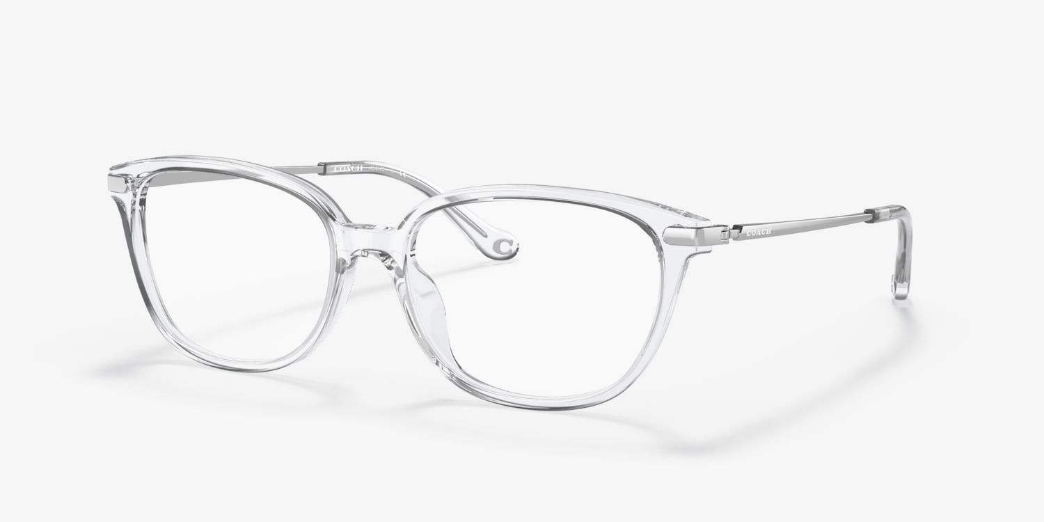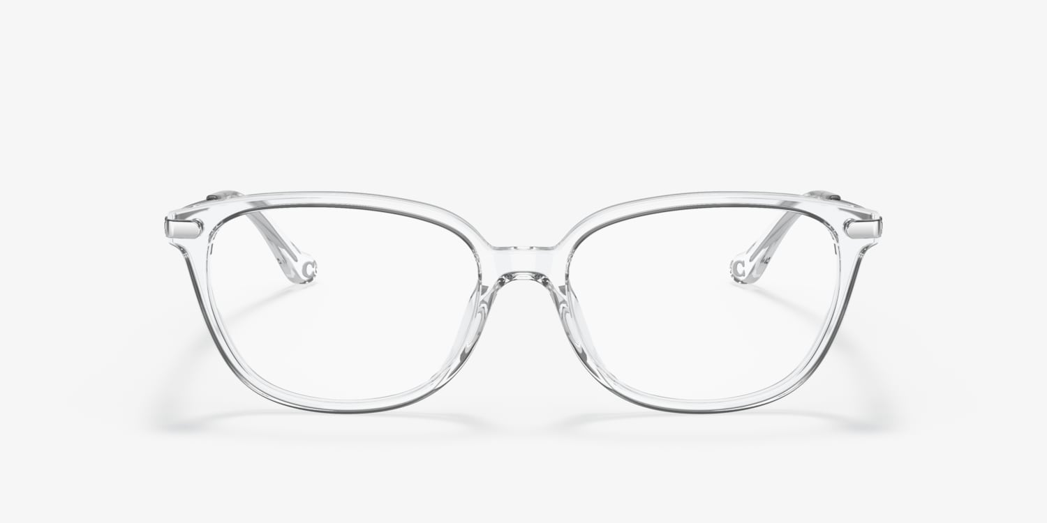 Elevate your style with Coach HC6185 eyeglasses. The pillow shape and polished finish give these frames a modern, sophisticated look. Crafted from durable acetate, the crystal color adds a touch of elegance to any outfit. These glasses are not only stylish but also practical. Embrace both fashion and functionality with Coach HC6185 eyeglasses. Available with prescription lenses.