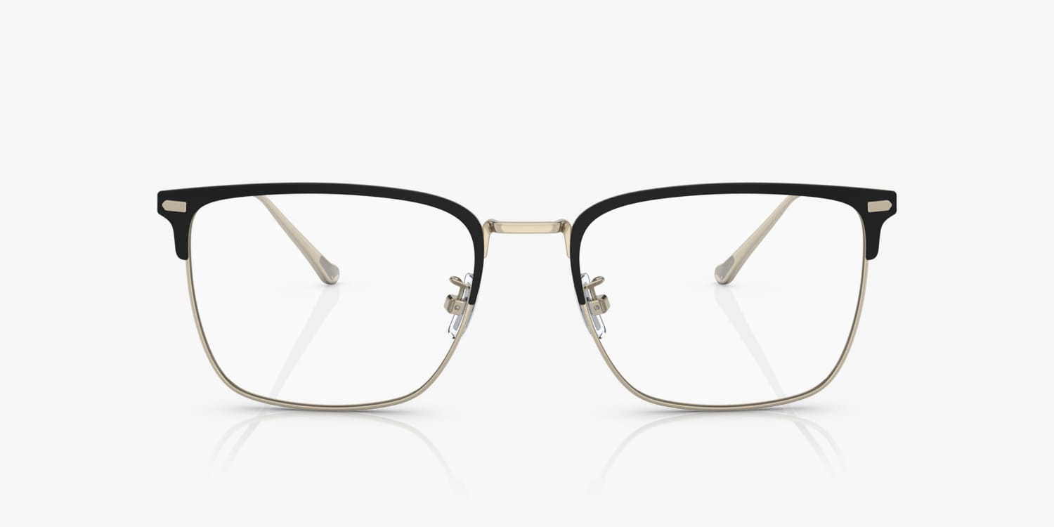 Experience the epitome of luxury and performance integration with these Coach HC5149T eyeglasses. Crafted from titanium, these square-shaped frames are lightweight and durable. The polished black/light gold finish adds a touch of sophistication to any look. These glasses are designed for those who appreciate both style and comfort. Available with prescription lenses.