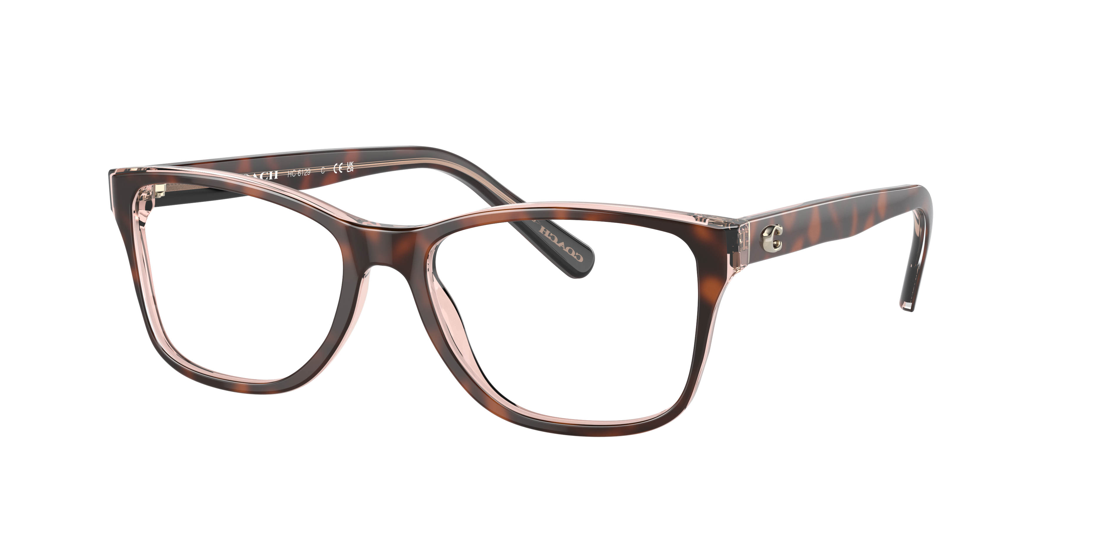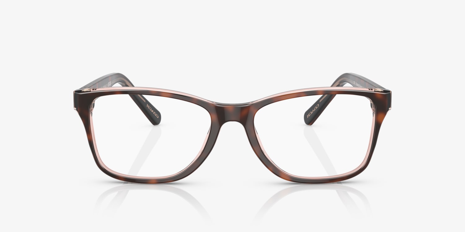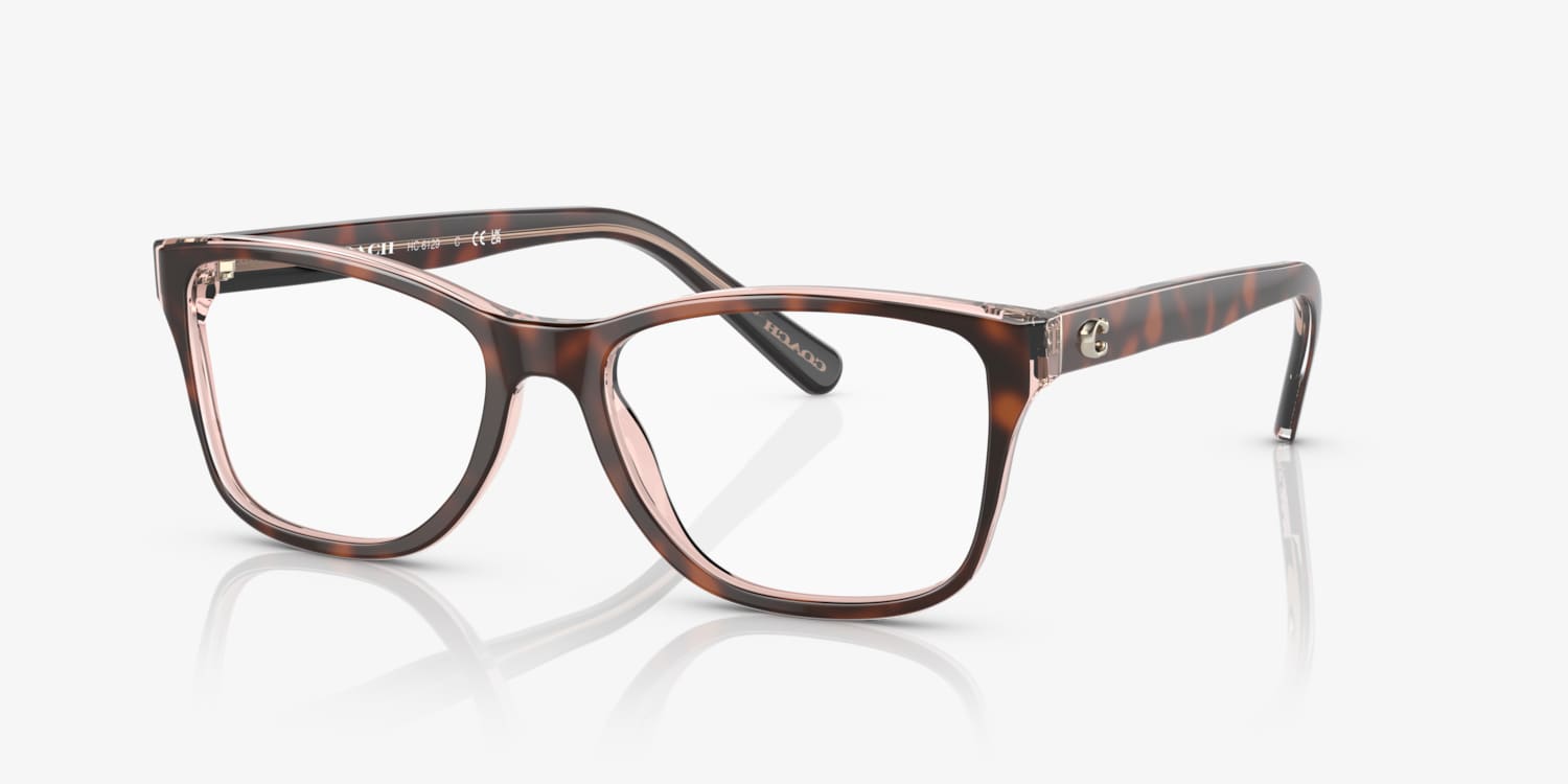 Embrace the sophistication and style that Coach HC6129 eyeglasses offer. The rectangle shape, combined with a polished finish, gives these glasses a modern and sleek look. The frame is made of durable acetate in a unique tortoise on transparent pink color, adding a touch of elegance to your everyday wear. These frames are not only stylish but also versatile, making them an ideal choice for those seeking both fashion and function.