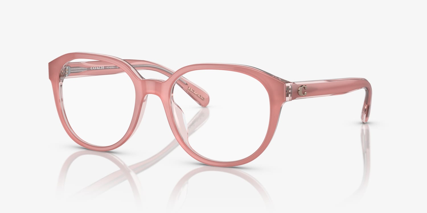 Elevate your style while maintaining a high level of comfort with Coach HC6209U eyeglasses. The round shape and polished finish give these glasses a timeless appeal, while the unique milky pink/transparent pink color adds a touch of modern sophistication. Crafted from durable acetate, these frames are designed to last. Choose Coach HC6209U for a look that is both stylish and versatile.