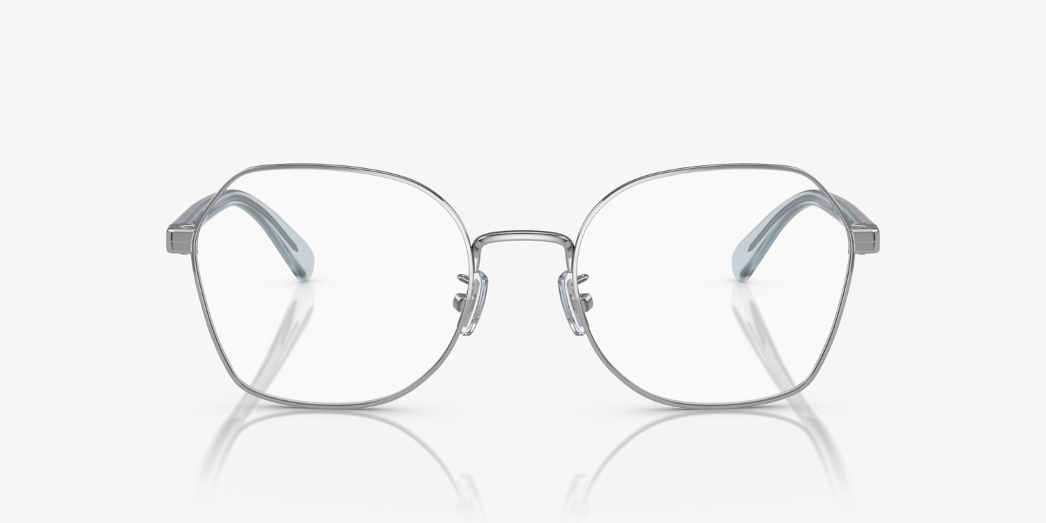 Elevate your fashion and enhance your vision with Coach HC5155 eyeglasses. The irregular shape of the metal frame adds a unique twist to a traditional design. The polished shiny silver finish gives these glasses a sleek and modern look. These frames are not only stylish but also versatile, making them an excellent addition to any eyewear collection. Available with prescription lenses.
