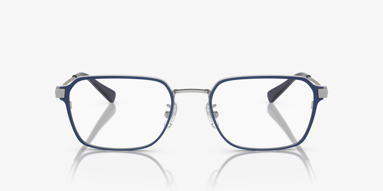 Elevate your fashion while maintaining an air of sophistication with Coach HC5167 eyeglasses. The rectangle shape and polished finish give these frames a sleek, modern look. Crafted from durable metal, the satin silver frame is designed to withstand everyday wear and tear. The saddle bridge provides a comfortable fit for those with higher cheekbones, while the adjustable temples ensure a secure fit. These eyeglasses offer both style and comfort, making them ideal for everyday use. Available with prescription lenses.