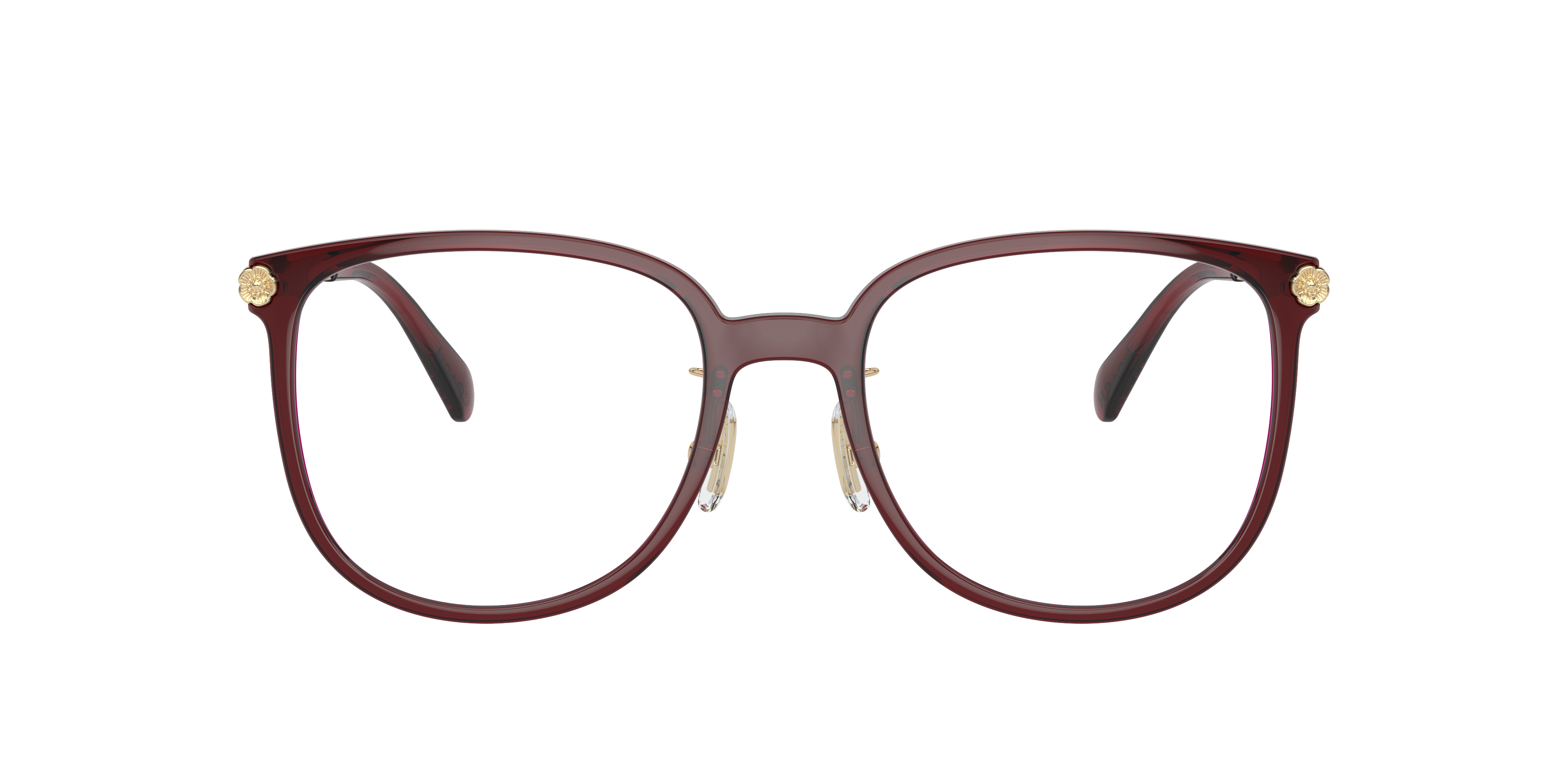 Elevate your style while maintaining a high level of comfort with Coach HC6241D optical glasses. The square shape and polished transparent burgundy frame, paired with the saddle bridge, provide a comfortable and stylish fit. These shades feature a unique design that is both fashionable and functional. With these glasses, you can express your individuality in style. Available with prescription lenses.