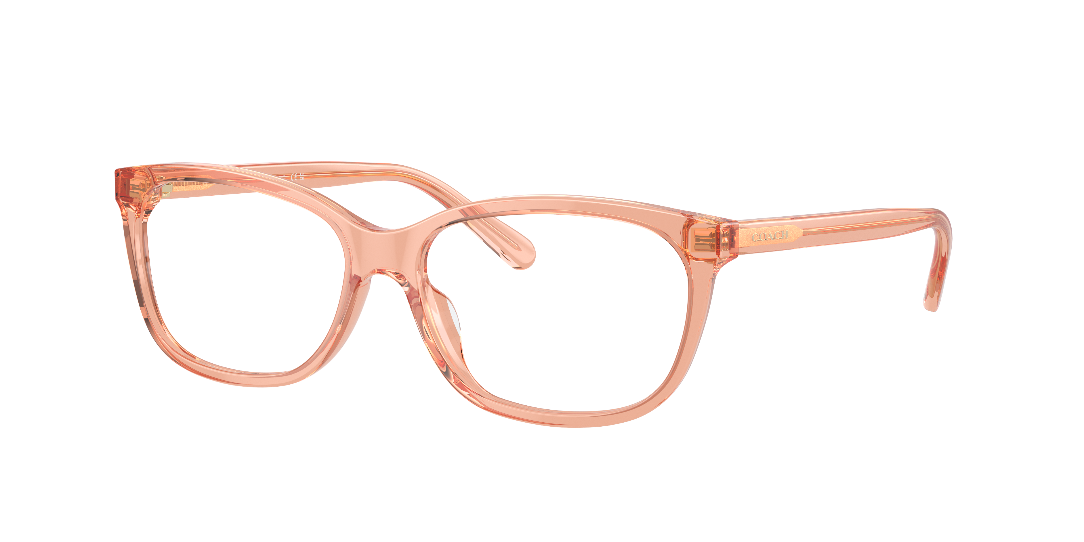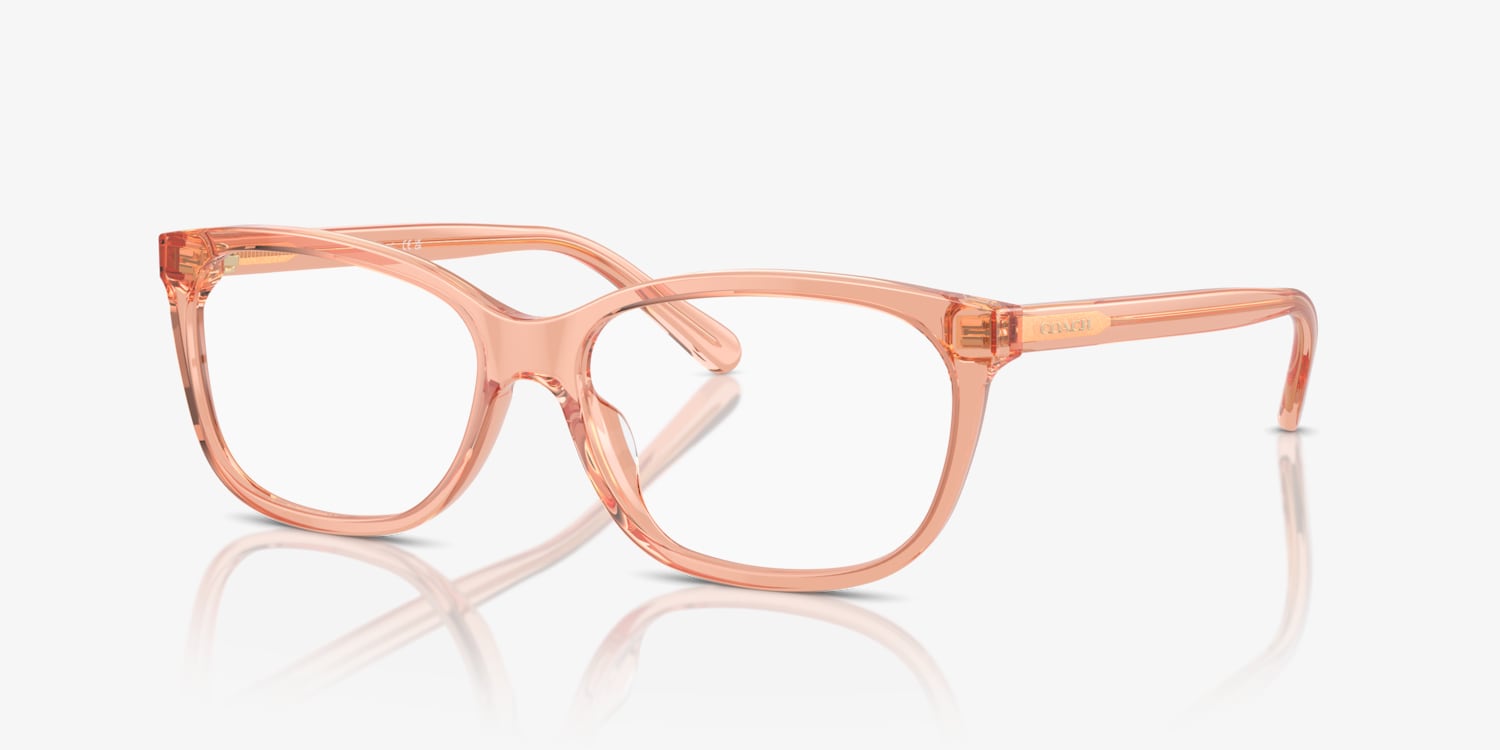 Experience the epitome of luxury and sophistication with Coach HC6139U optical glasses. The pillow shape and transparent saddle frame color give these frames a unique and trendy look. Crafted from high-quality acetate, these shades are not only stylish but also durable. The polished finish adds a touch of elegance to your overall look. Embrace the freedom to express yourself with these stunning Coach frames. Available with prescription lenses.