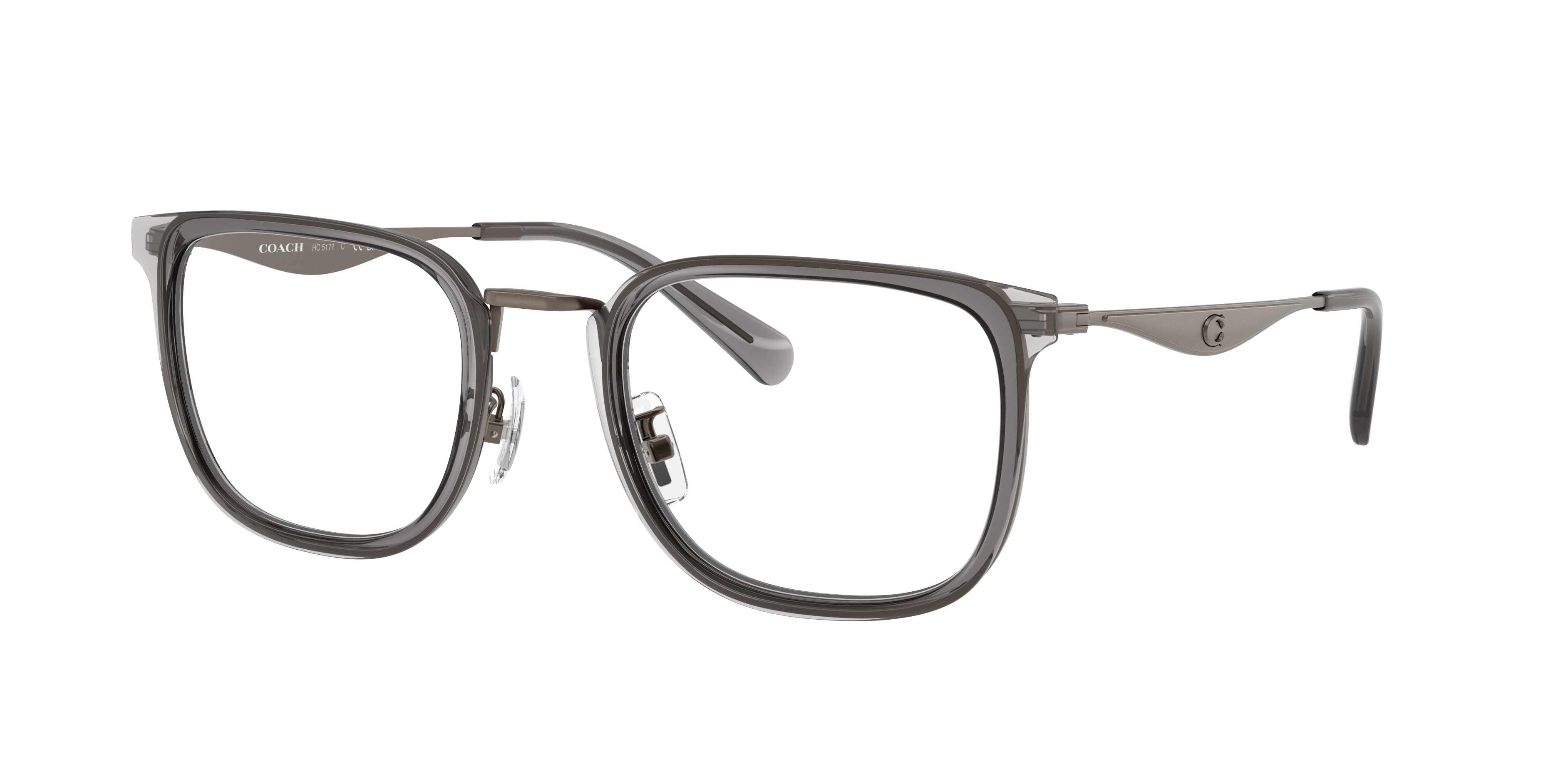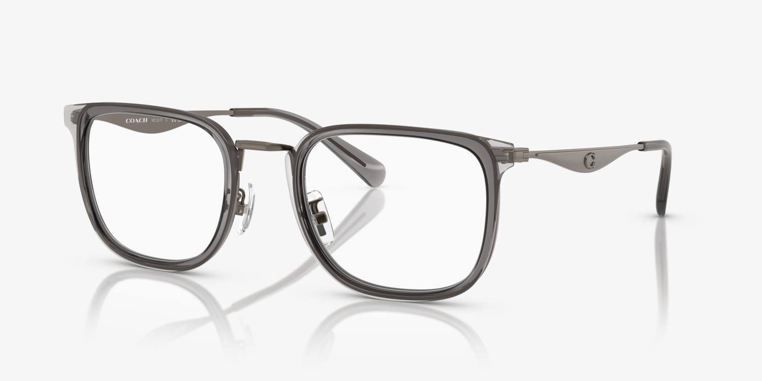 Elevate your style quotient with Coach HC 5177 eyeglasses. The square shape and polished finish give these frames a modern edge, while the metal material ensures durability. The transparent grey color provides a neutral base for any outfit, making these shades versatile and stylish. The saddle bridge adds comfort, making these glasses an ideal choice for everyday wear. Embrace your individuality with this sophisticated pair from Coach. Available with prescription lenses.