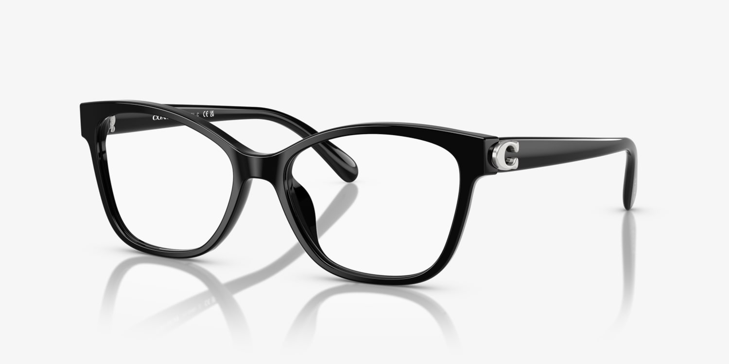 Elevate your fashion and vision standards with Coach HC6246U eyeglasses. These butterfly-shaped frames are crafted from durable acetate and features a polished black finish, adding a touch of sophistication to any look. The frame is fitted with a pair of transparent lenses, providing optimal clarity and versatility. With its timeless design and impeccable craftsmanship, these shades are a must-have accessory for any fashion-forward individual. Available with prescription lenses.
