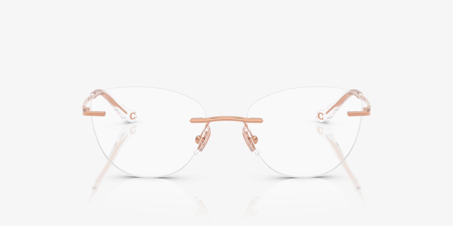 Elevate your fashion game with Coach HC 5185. These cay-eye glasses features a polished, shiny rose gold frame crafted from durable metal. The saddle bridge offers a comfortable fit, while the frame shape adds a touch of vintage charm. The black color of the lenses is neutral and versatile, making these frames ideal for any occasion. Available with prescription lenses.