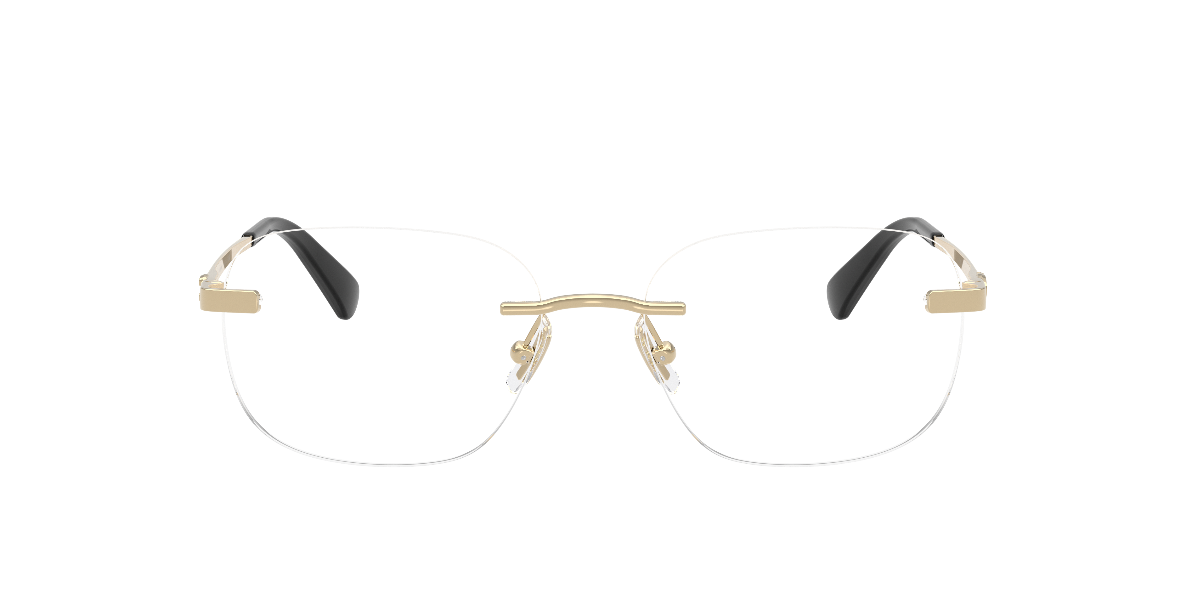 Elevate your eyewear game with the HC5206D optical frames from Coach. These rimless irregular frames offer a sleek, contemporary look, crafted from lightweight metal in a chic gold hue. Designed as eyeglasses with a low bridge fit and a classic saddle bridge, they deliver both comfort and style. Adorned with the sculpted C logo and Coach wordmark on the temple, they embody elegance and intricate craftsmanship.