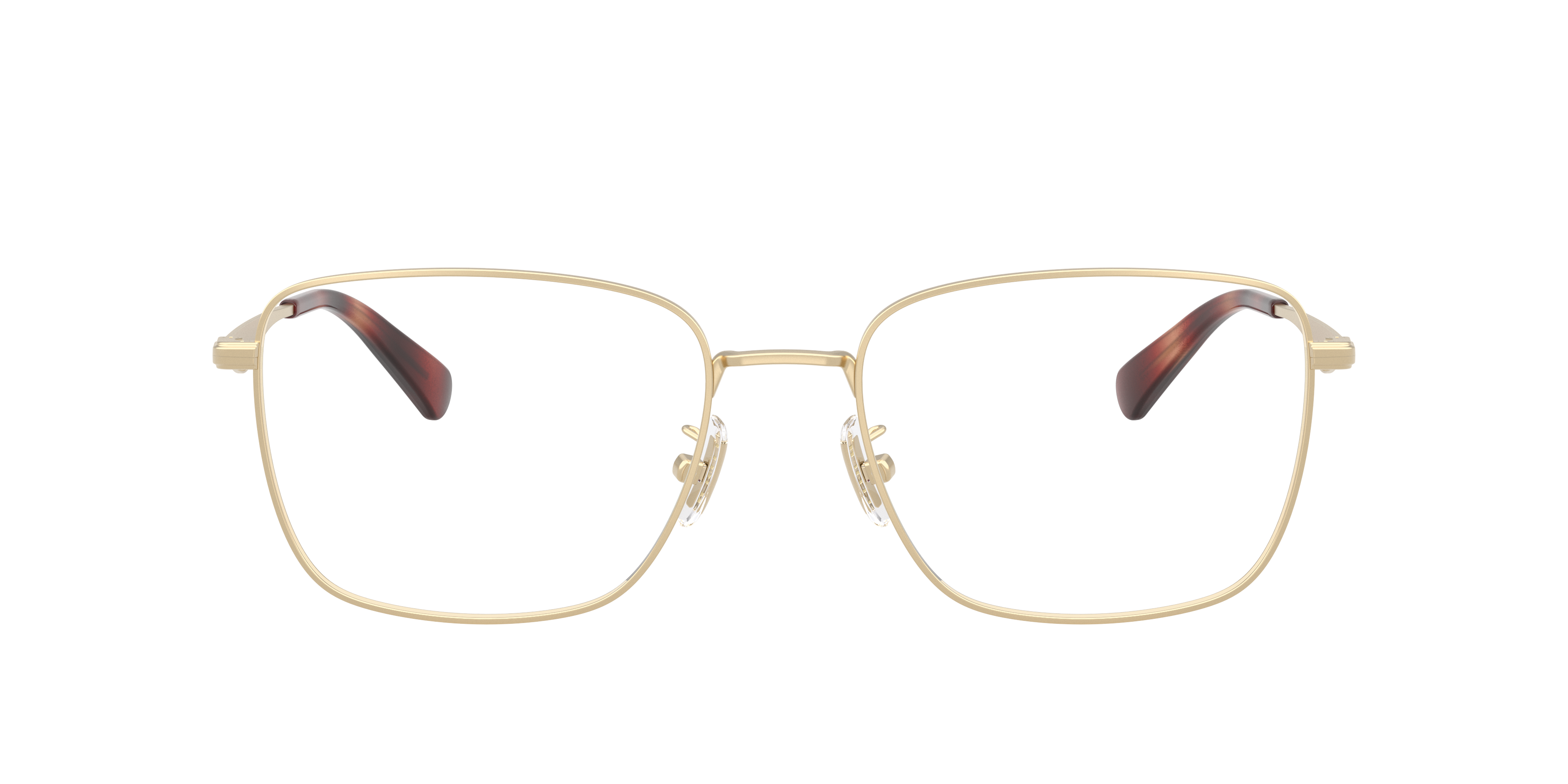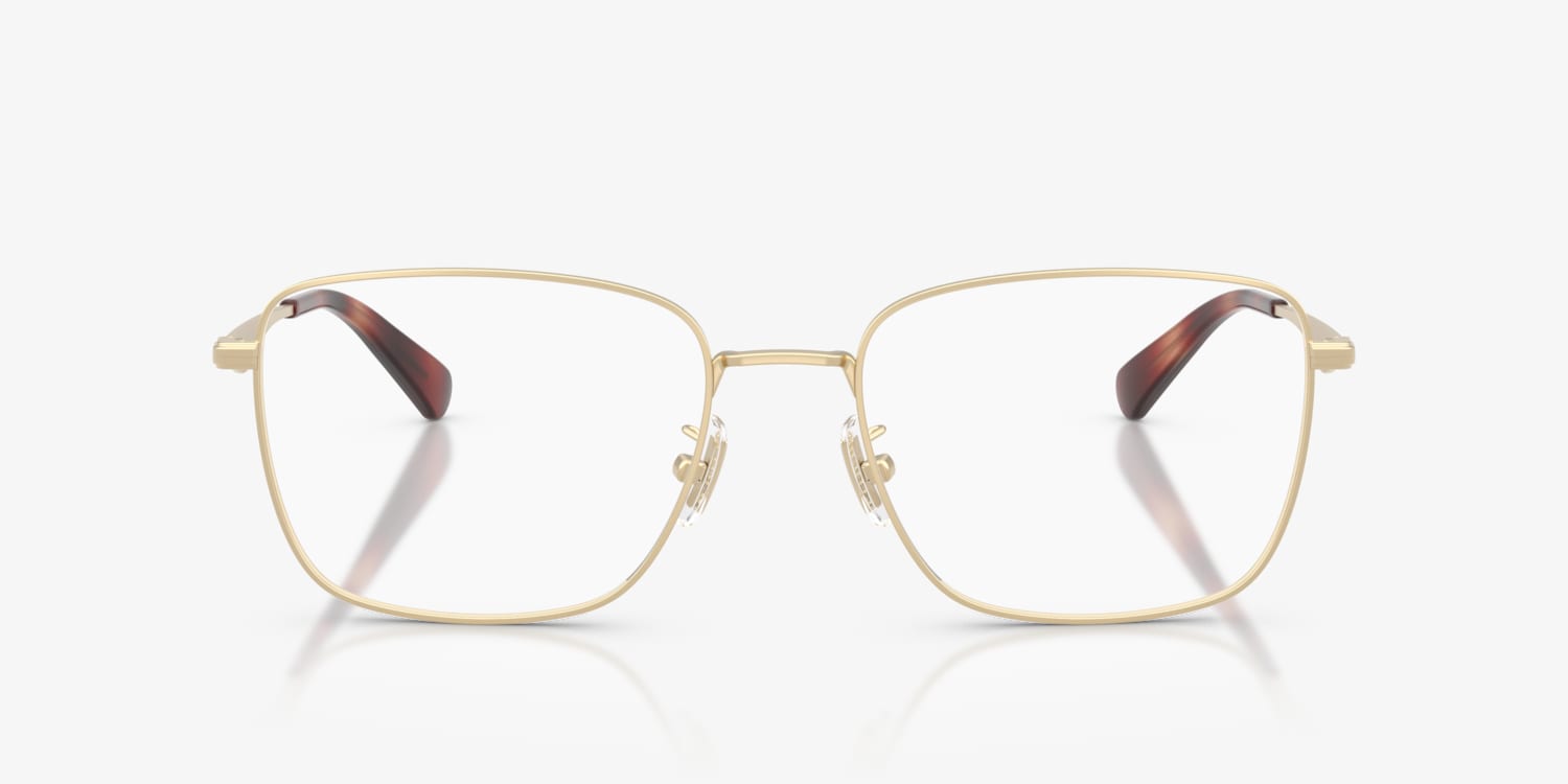 The Coach HC5205 optical glasses feature sleek metal square glasses frames, defined by sharp angles for a modern and structured look. Finished with gold frames at the front and sculpted C logo accents on the temples, they exude refined style. Adjustable nose pads and a saddle bridge ensure superior comfort and fit.