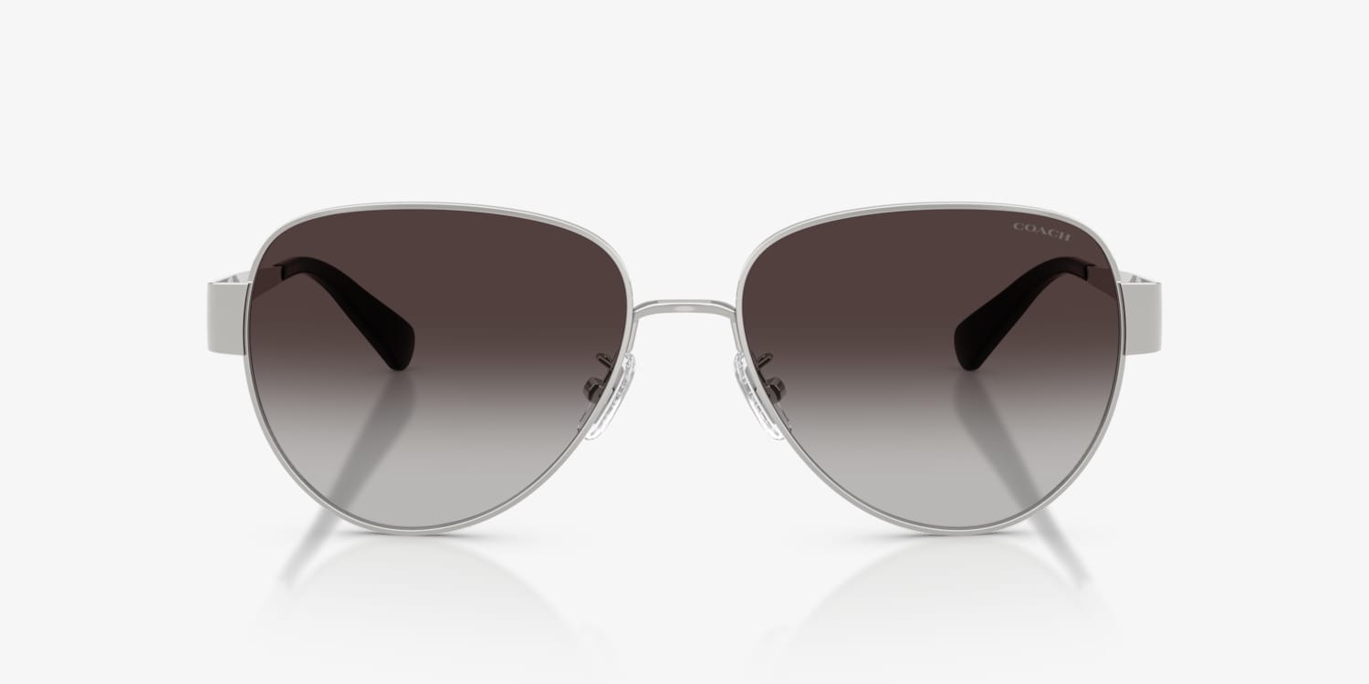 Embrace timeless design with the Coach HC7186 CDP37 sunglasses. These sleek pilot-shaped frames, crafted from lightweight metal, deliver contemporary sophistication inspired by the iconic Coach Idol bag. Finished with earthy silver, gunmetal, and grey tones, they exude modern elegance. Gradient sunglasses with grey lenses and adjustable nosepads enhance comfort while maintaining their luxe appeal. Complete your look with eyewear that blends classic style and contemporary details seamlessly.