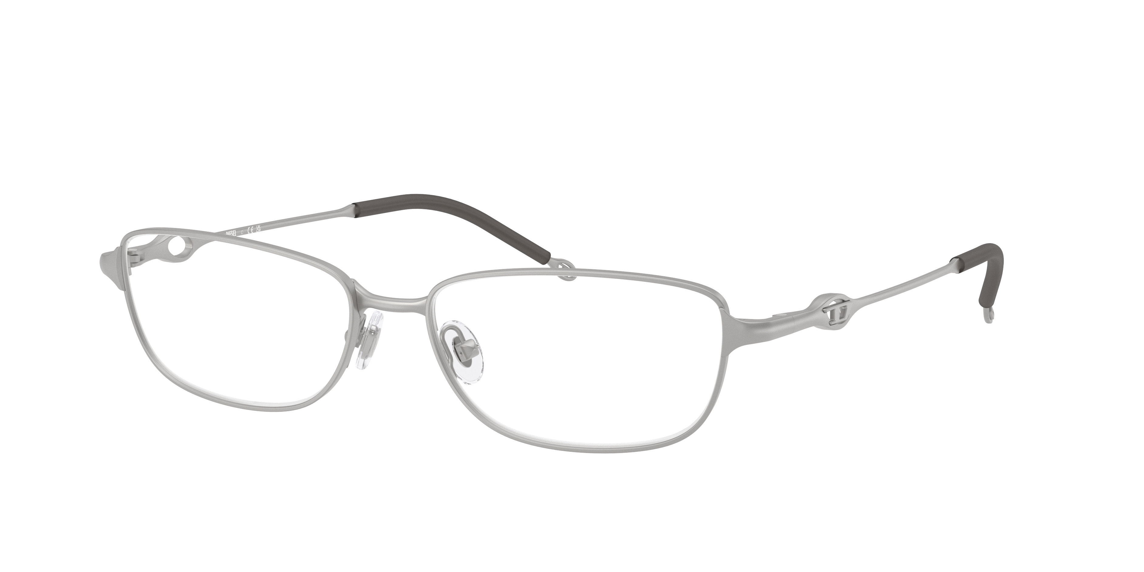 Elevate your style with Diesel DL5002. These rectangle-shaped glasses features a matte silver metal frame that is both durable and lightweight. The black temples contrast beautifully against the frame, adding a touch of sophistication. These shades are not just stylish but also practical, making them an ideal choice for everyday wear. Available with prescription lenses.
