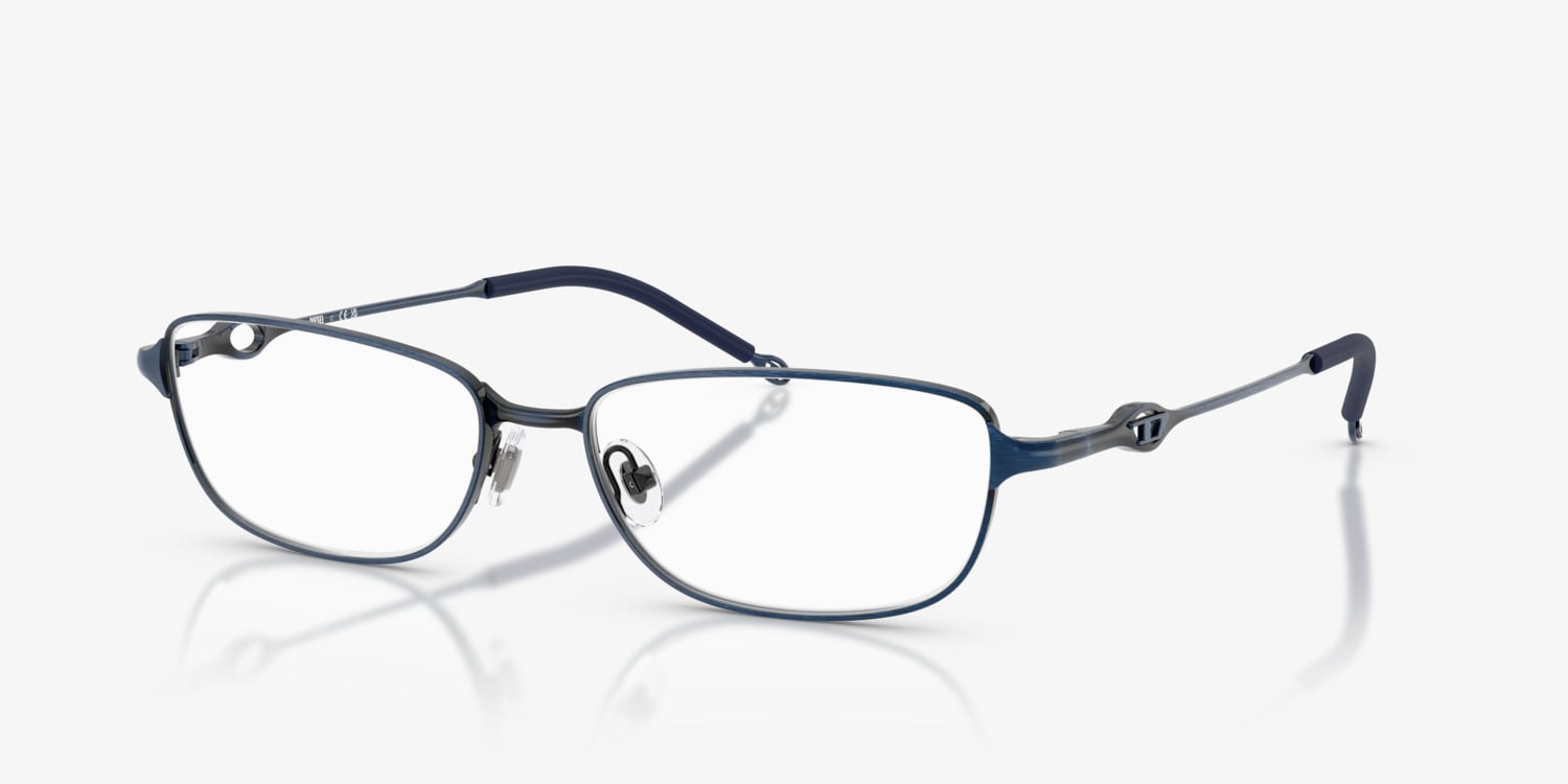 Elevate your style quotient with Diesel DL5002 optical frames. Crafted from durable metal, these rectangle-shaped glasses features a polished finish and a unique brushed antique blue color, adding a touch of sophistication to any look. The frame is also available in a black color for those who prefer a more traditional aesthetic. These shades are not just stylish but also versatile and practical. Embrace the synergy between fashion and functionality with Diesel DL5002. Available with prescription lenses.