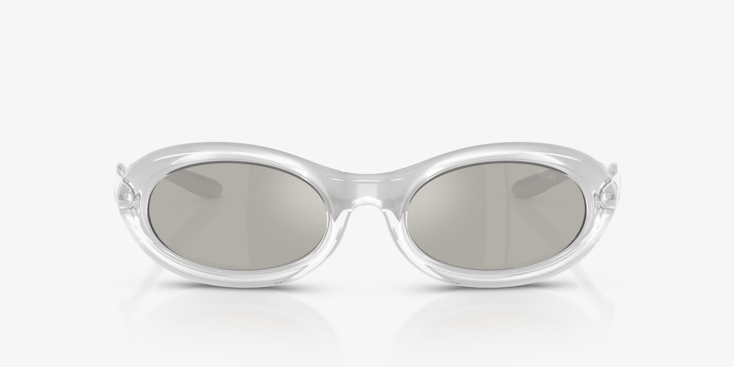 Elevate your style with Diesel DL3011U. These oval shades feature a polished metallic crystal frame that adds a touch of glamour to any look. The light grey mirror silver lenses provide excellent protection while also adding a sleek, futuristic edge. Solid color mirror treatment gives these glasses a distinctive, eye-catching appeal. Embrace your individuality and express yourself with these unique shades from Diesel.