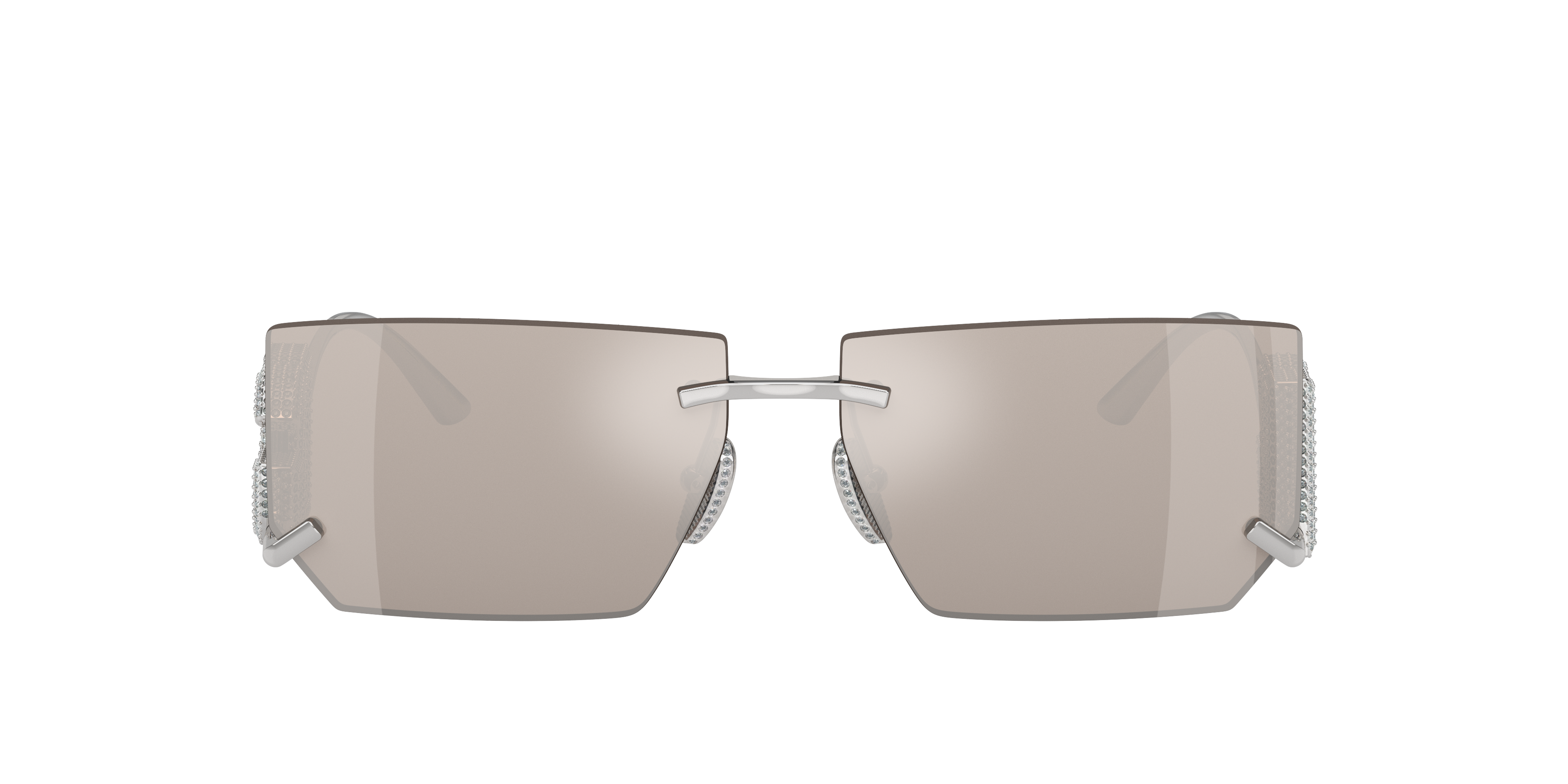 Dolce&Gabbana DG2304B glasses are a perfect blend of style and sophistication. The polished silver metal frame, adorned with strass, adds a touch of glamour to any outfit. These rectangle-shaped shades feature solid color mirror lenses that not only provide excellent protection but also enhance your style quotient. Embrace the glamorous side of life with these exquisite Sun shades from Dolce&Gabbana. Available with prescription lenses.