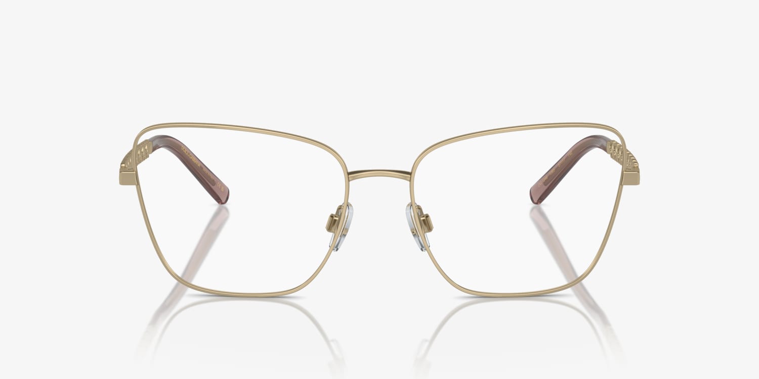 Experience the impeccable blend of style and functionality with Dolce&Gabbana DG1346 eyeglasses. The butterfly shape, crafted from durable steel, is a timeless design that complements any face shape. The polished light gold frame color adds a touch of elegance to your look. These glasses are not just stylish but also practical.