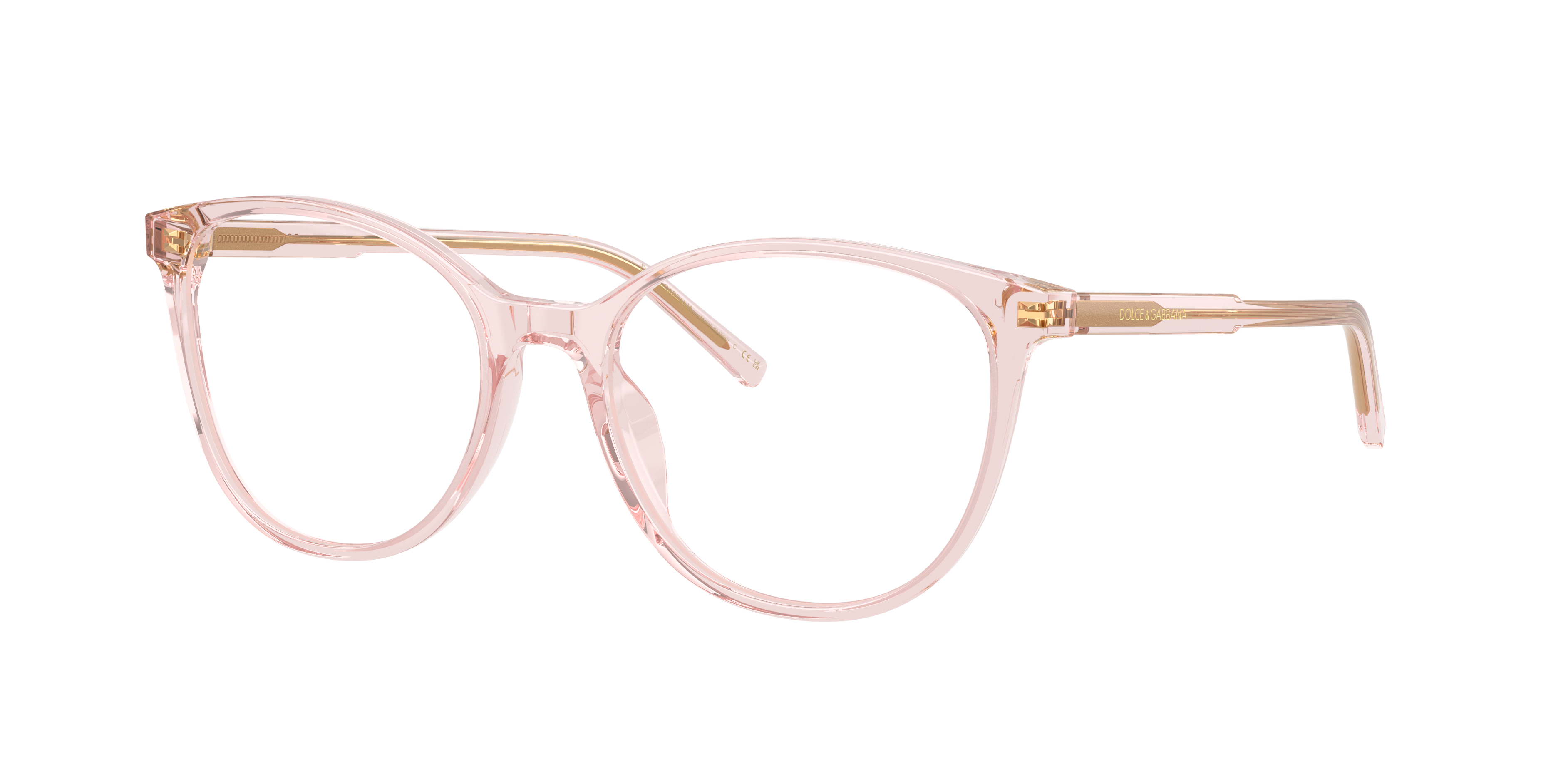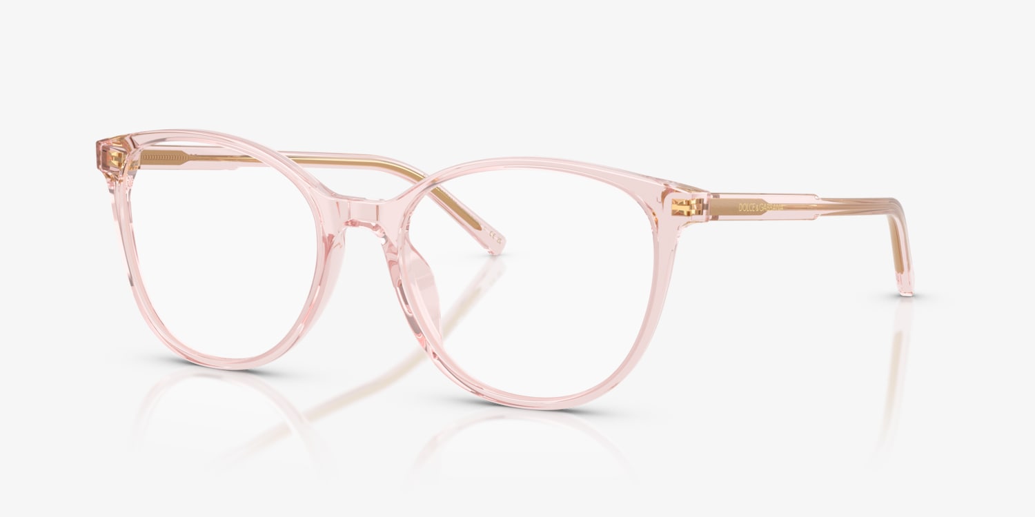 Experience the epitome of luxury with Dolce&Gabbana DG3425 eyeglasses. The butterfly shape and transparent rose frame color, crafted from acetate, exude a sense of elegance and sophistication. These frames features a polished finish that adds a touch of glamour to your look. Embrace the timeless beauty of Dolce&Gabbana with these stunning glasses. Available with prescription lenses.