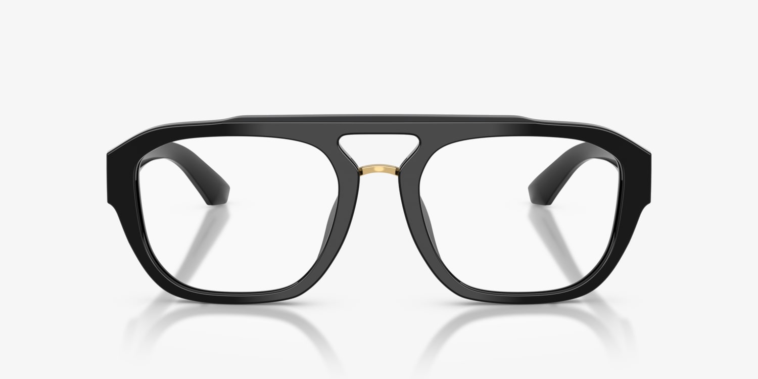 Elevate your style with the Dolce&Gabbana DG3415 eyeglasses. These full-rim aviator frames feature striking black frames, crafted from durable plastic for a polished look. With wide acetate temples adorned with iconic DG crossed logos, the design showcases a distinctive metal lower bridge for added sophistication. Perfectly embodying the bold spirit of the Spring/Summer 2025 campaign, these glasses combine timeless allure with contemporary detail.
