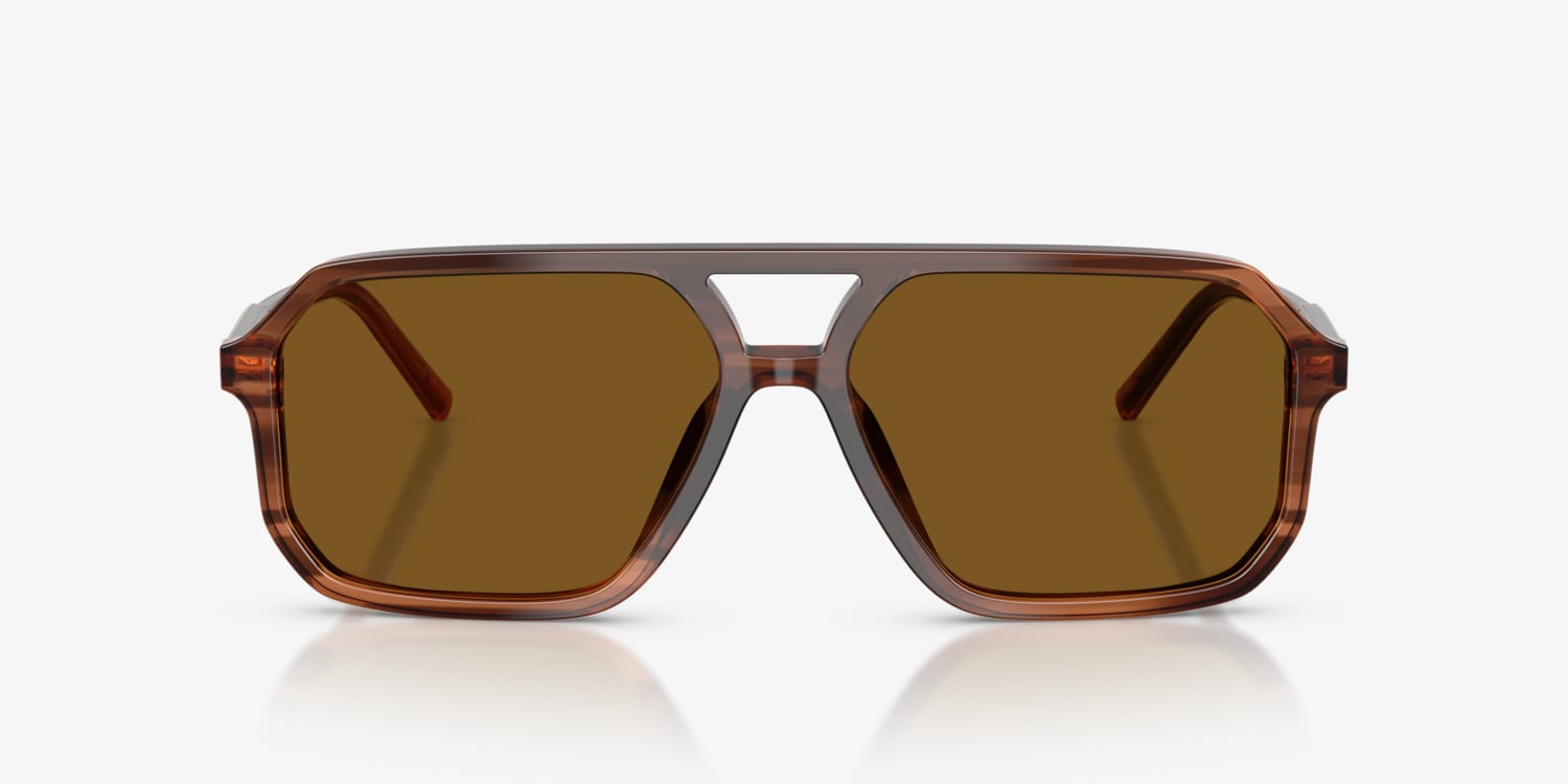 The Dolce&Gabbana DG4541 sunglasses blend timeless style with modern functionality. The pilot frames feature a classic double-bridge and geometric angles, crafted from lightweight brown plastic for enduring comfort. Polarized sunglasses with solid brown lenses enhance clarity by reducing glare and reflections. Subtle branding, elegantly showcased with the under-resin Dolce&Gabbana logo in gold or silver, adds a sophisticated finish. Perfect for elevating any look with iconic design and premium sun protection.