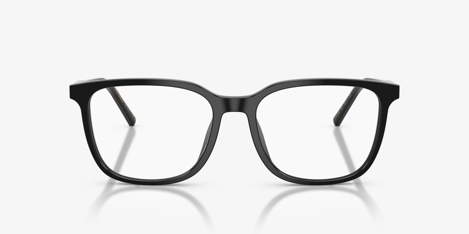Elevate your eyewear game with the Dolce&Gabbana DG3445 optical glasses. The square glasses feature sharp angles and a modern, structured silhouette in lightweight black plastic. Designed with a universal fit, the thin acetate temples are subtly adorned with an under-resin Dolce&Gabbana extended logo for a refined finish. Clear lenses complete the sophisticated look.